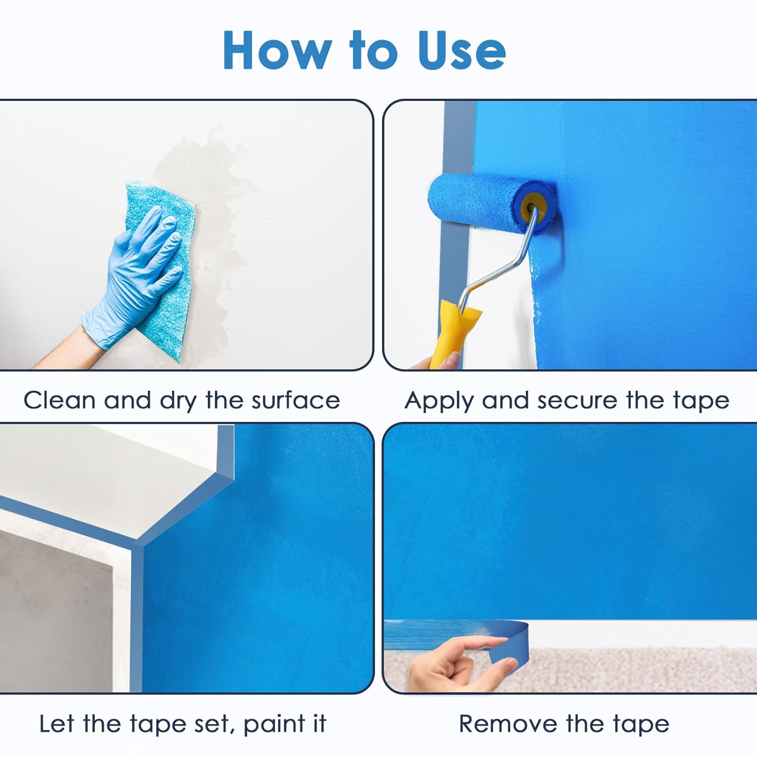 - Versatile Application: Our blue painters tape is an essential tool for wall painting and automotive projects, making it highly suitable for use in renovations and home DIY projects. Additionally, it can serve various purposes such as painting, labeling, categorizing, and crafting