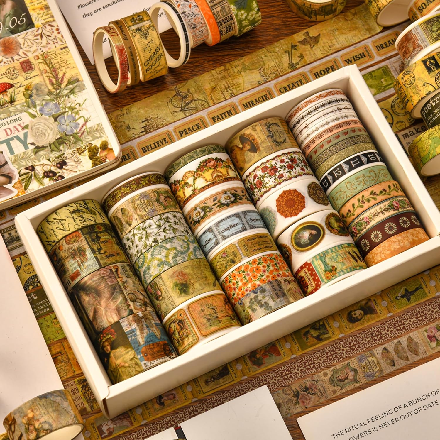 36 Rolls Vintage Washi Tape Pack Retro Arts Adhesive Tapes Wide Chronicle Decorative Masking Tape Sets for Craft, Kids, Scrapbook, DIY, Gift Wrapping (Madame de Pompadour)
