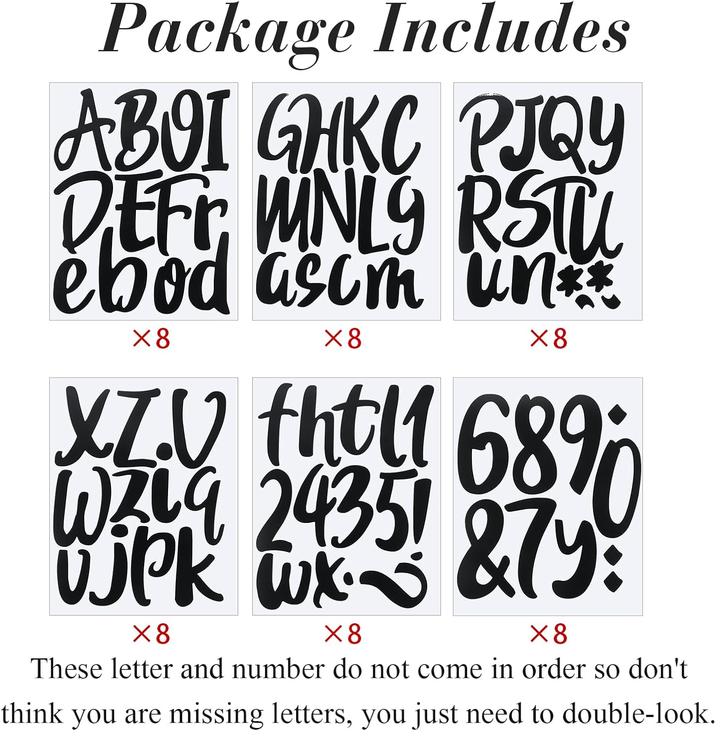 - Package Included: you will receive 8 sheets self adhesive vinyl letters numbers, totally 576 pieces, including 208 pieces capital letter, 208 pieces lowercase letter and 160 pieces numeric and punctuation, abundant quantity to meet your daily use requirements