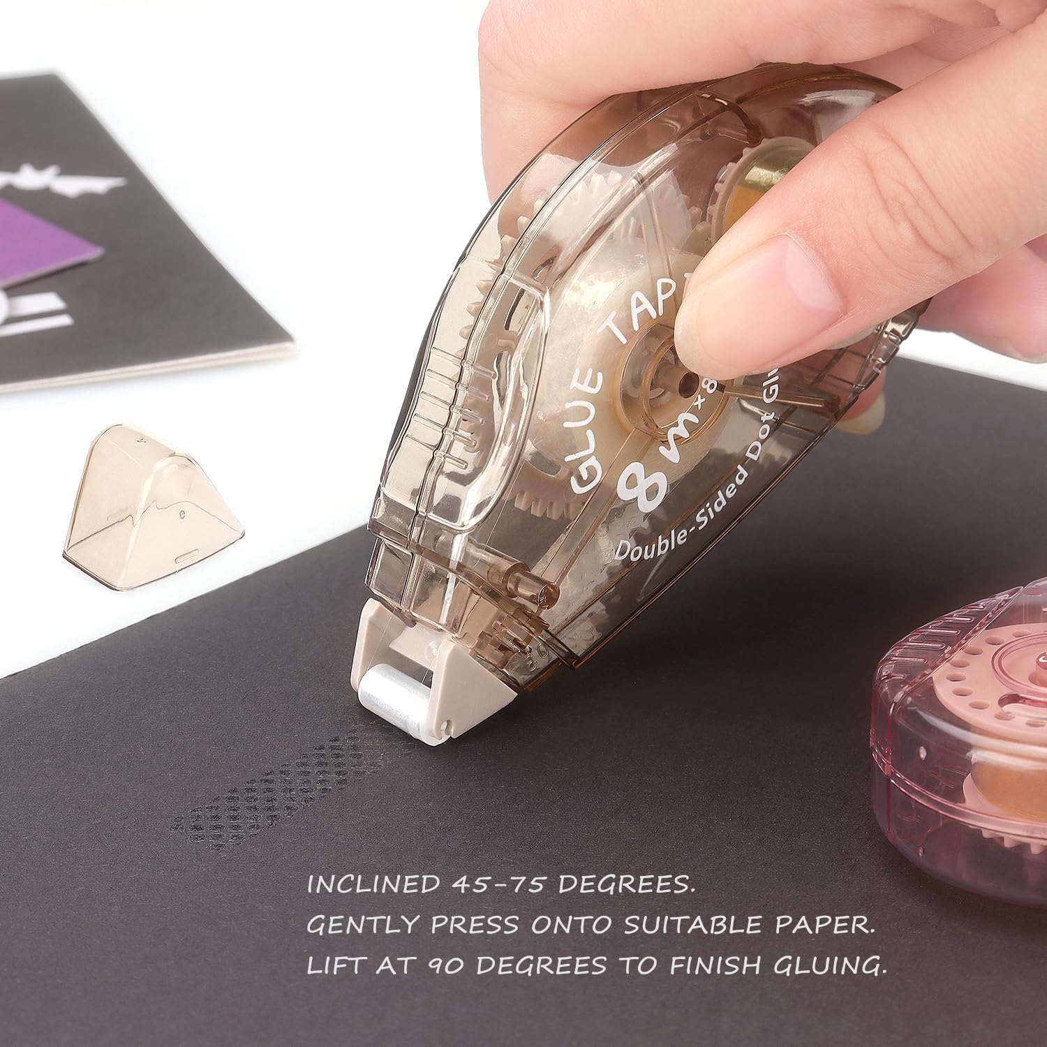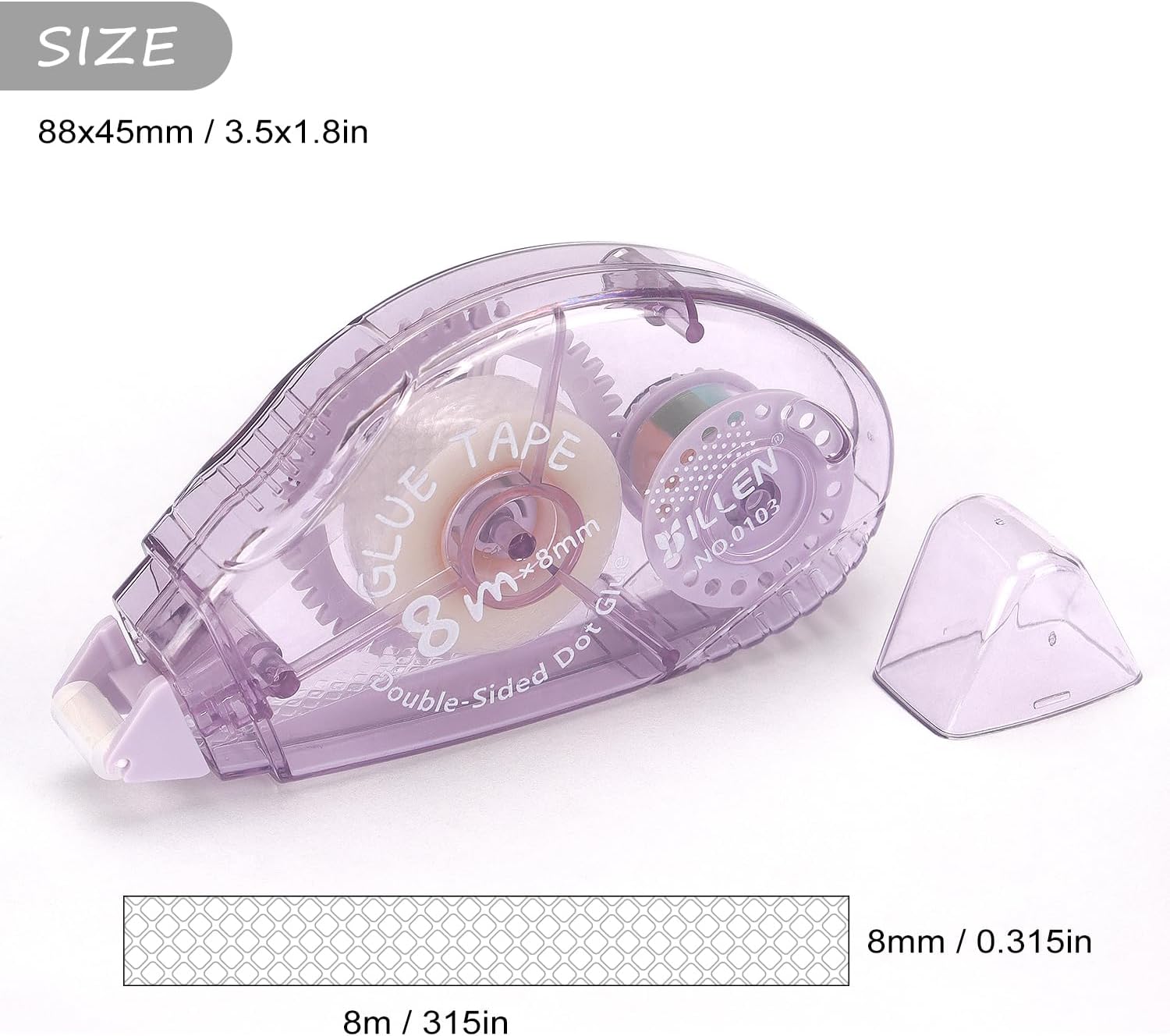 - Each dispenser holds 0.31 x 315 inch (8mm x 8m) of double sided tape.