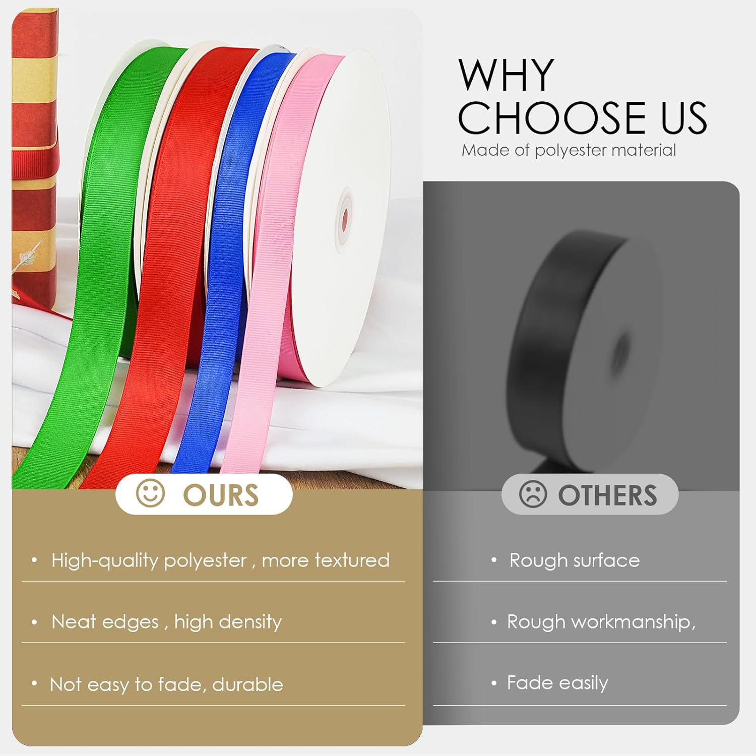 - SIZE: This solid color grosgrain ribbon measures 5/8 inch width and 100 yards length. Enough to meet your daily needs, super cost-effective for you and easy to store.