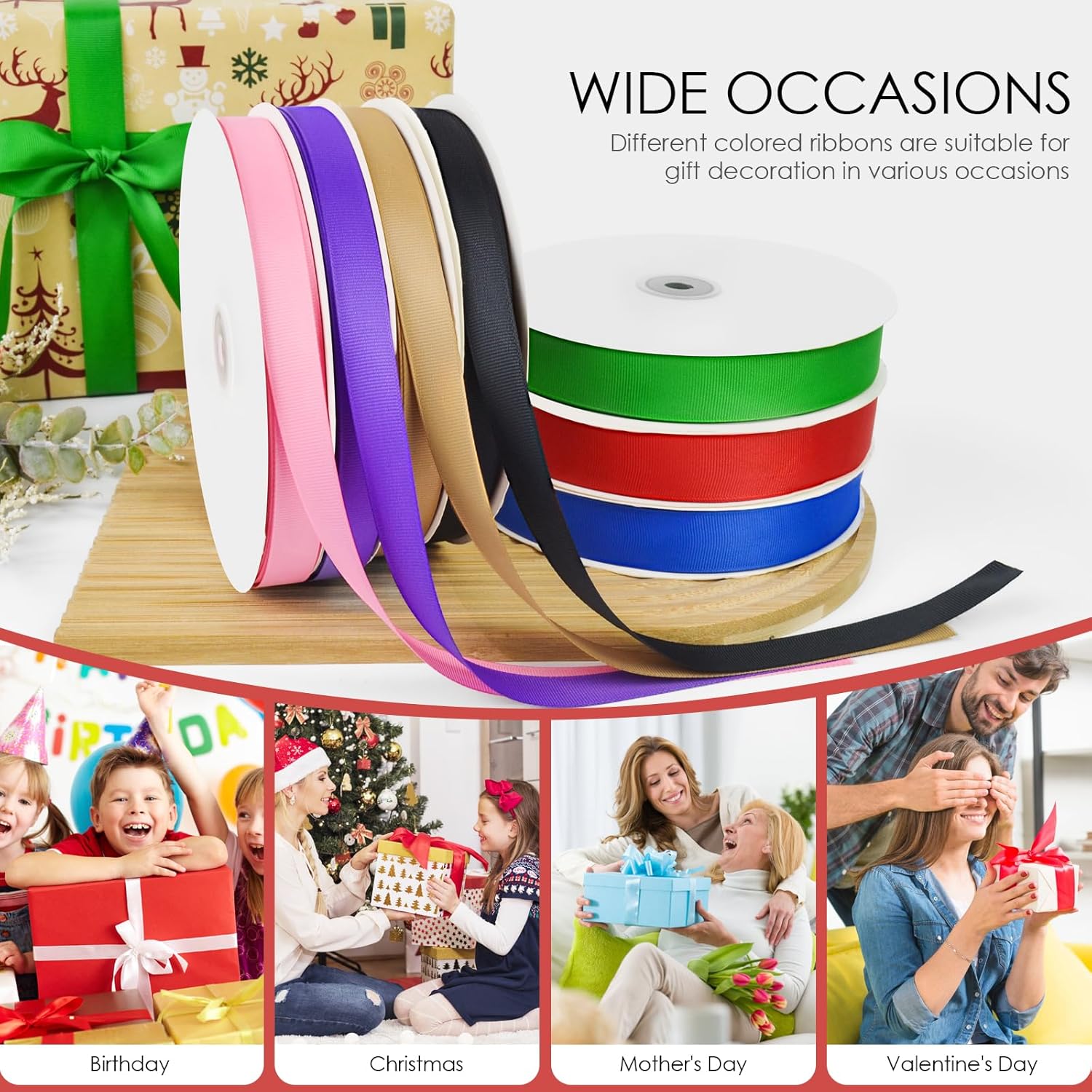 - DIFFERENT OCCASIONS: These wrapping ribbons and decorative ribbons are suitable for many occasions like birthday party decoration, Mother's Day, Father's Day, Valentine's Day, Easter, Halloween, Christmas, Thanksgiving, New Year's Gift, baby shower, etc.
