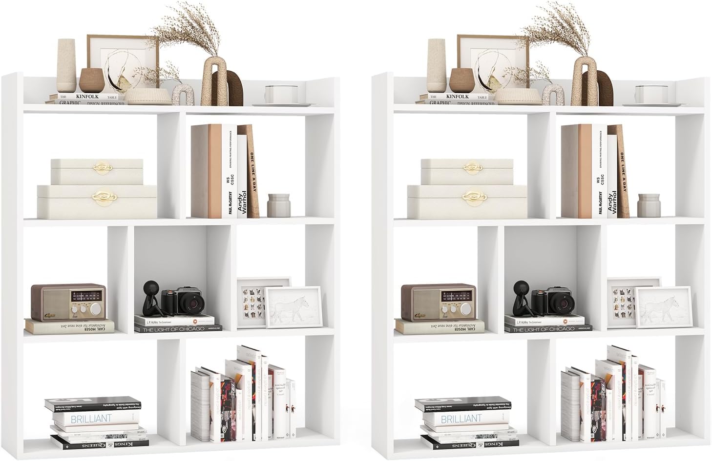 Giantex 7 Cube Bookshelf of 2, Free-Standing Wooden Bookcase, 4 Tier Home Display Shelf, Horizontal Storage Unit w/Anti-Toppling Devices, Open-Back Display Rack for Study, Living Room, White