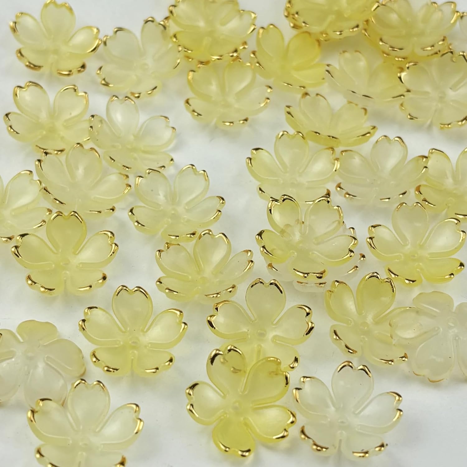 - Feature: Our flower beads for crafting are easy to thread, with a hole through the center, which can meet different projects needs. The gold-plated and graded colors design around the cherry blossom petals, the plentiful and bright colors can make your handmade works more outstanding. Size: About 19mm in diameter, 1.8mm in hole.