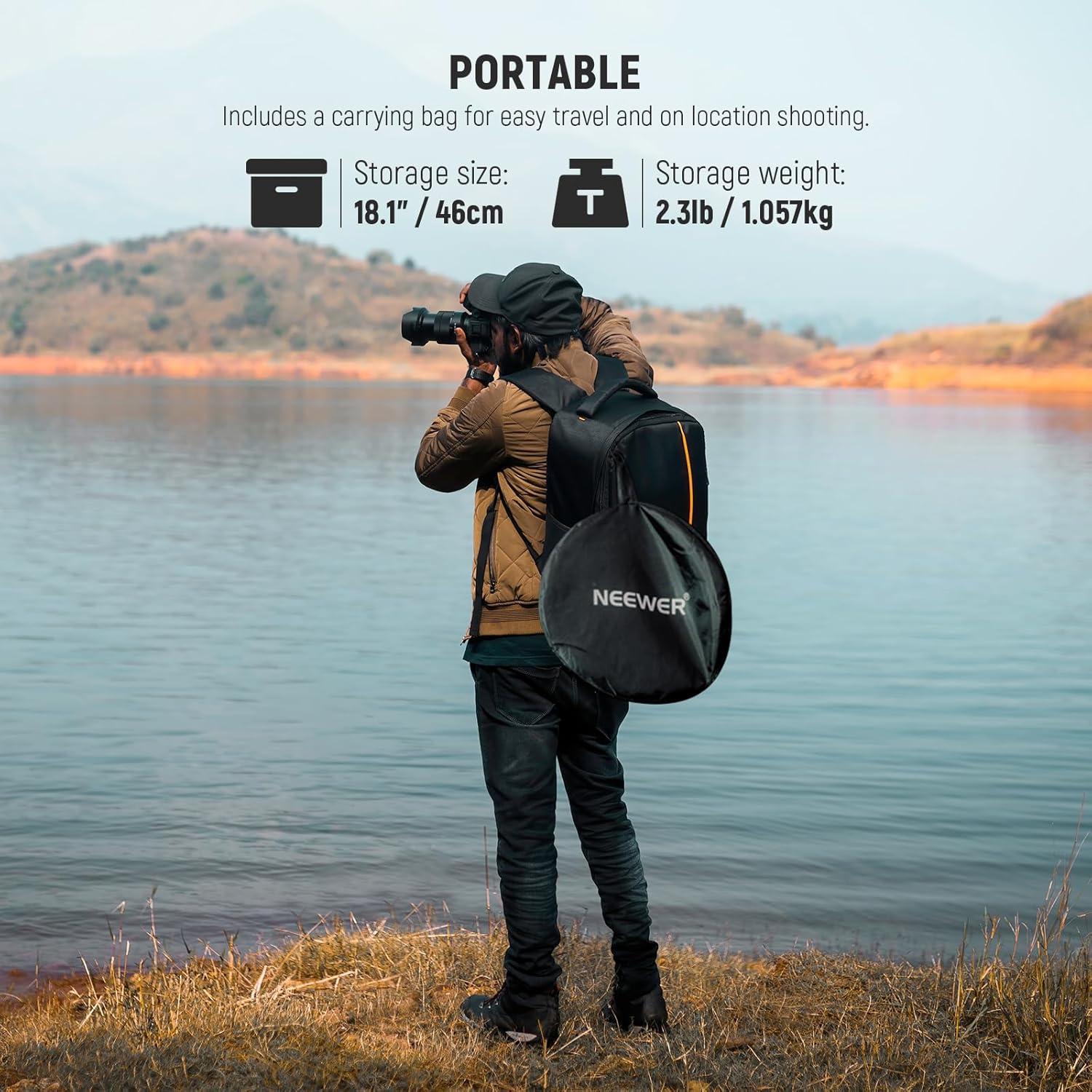 - 【Foldable for Convenient Storage】 The light diffuser reflector is foldable for easy storage and portable with the included bag, ideal for outdoor travel photography and on location shoots
