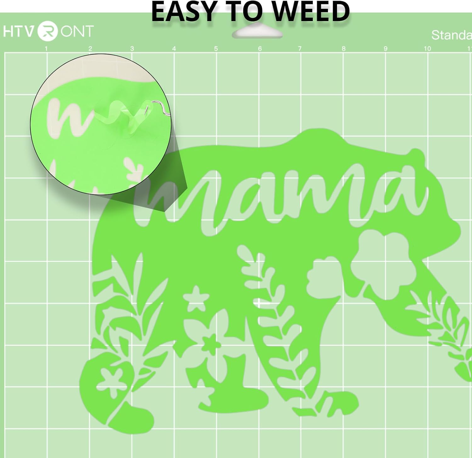 - Clear PET Backing: Using our green permanent vinyl with PET backing, you will not need to clean your mat and worry about project damage. No more cheap paper backing ruining and separating from the vinyl in the cutting process. Our PET backing is the ultimate answer to your woes