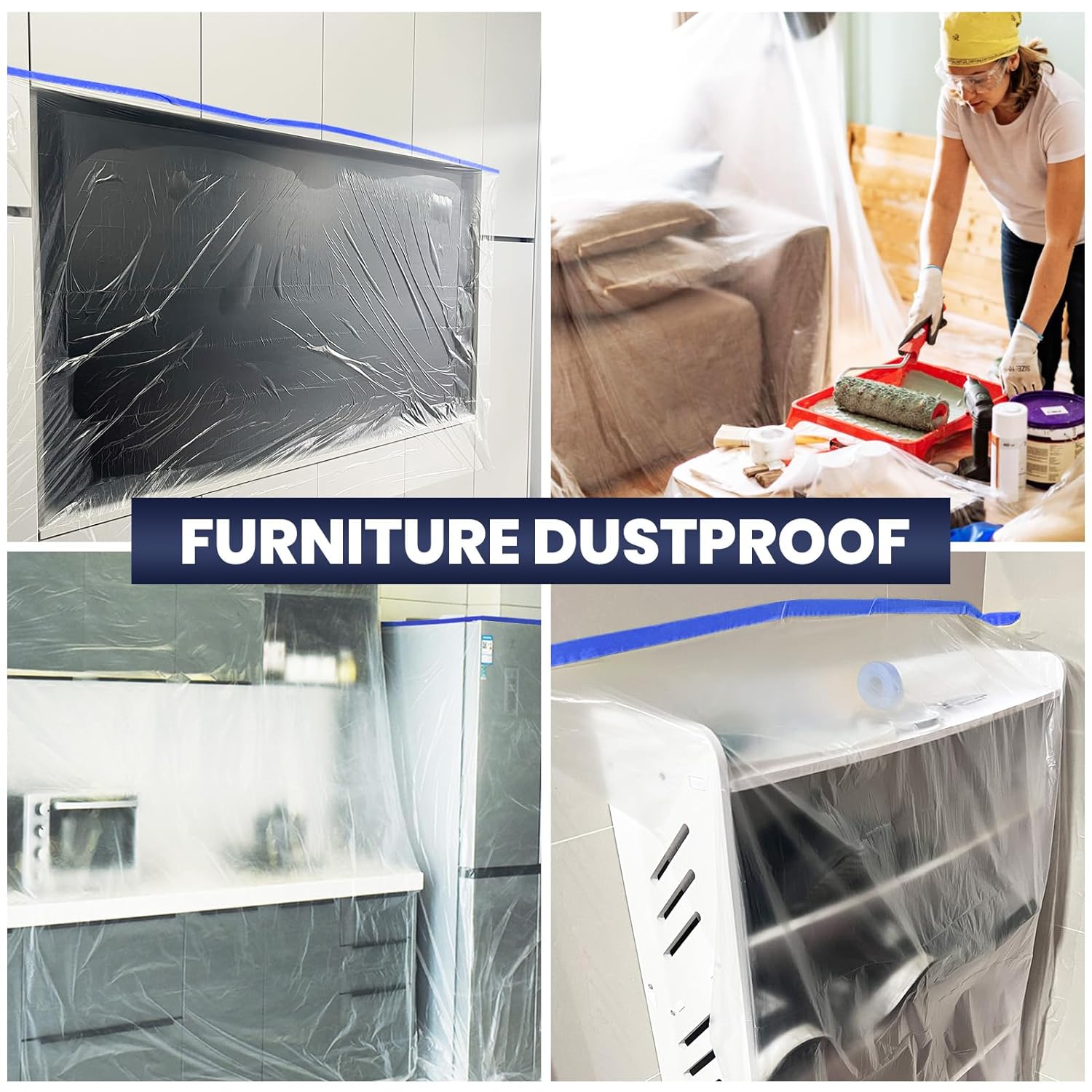 - All-in-One Protection for Painting & Decorating: The pre-taped masking film combines high-quality masking tape with tear-resistant polyethylene plastic film, providing superior dust and paint protection for cars, furniture, appliances, and surfaces during painting or decorating projects.