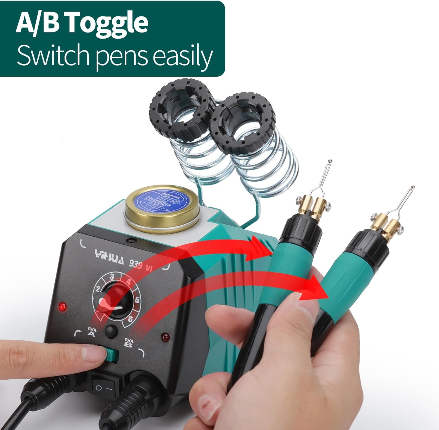 YIHUA 939-VI Dual Wood Burning Pen Wood Burning Kit with 23 Wire Nib in Varied Shapes, Detachable Pyrography Pen, 6 Wood Pieces, 6 Stencils and Screw Driver, Tweezers Used as Wood Burning Tool