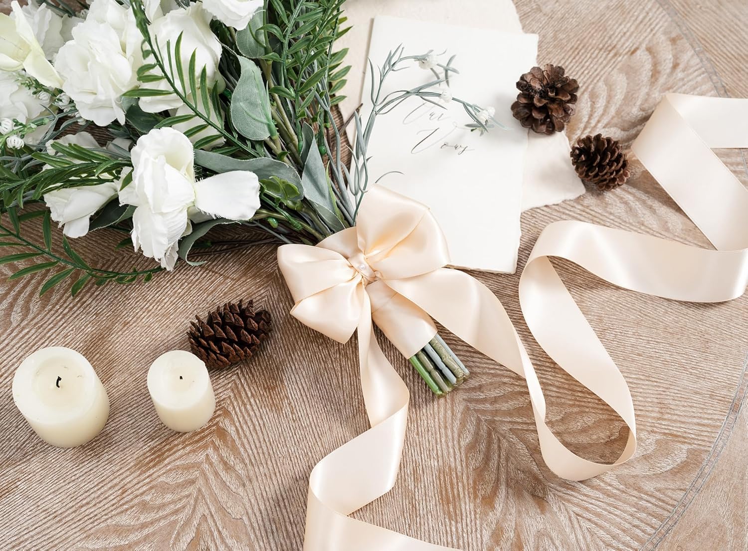 Light Champagne Satin Ribbon 1-1/2 Inch x 50 Yards Double-Faced Polyester Ribbons for Flower Bouquet Gift Wrapping Party Decor Wedding Invitation DIY Craft