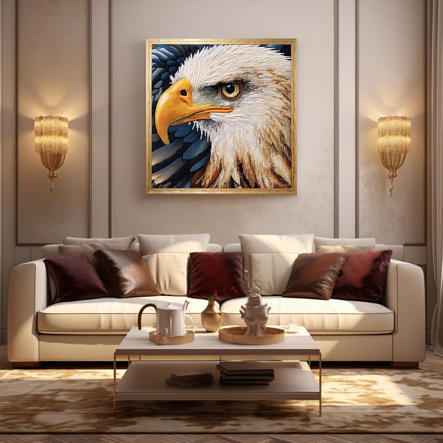 51buyoutgo 11CT Stamped Cross Stitch Kits for Adults - 12x12 in Beginner Embroidery Kit with Funny Easy Washable Animal Eagle Pattern, Pre Printed Fabric for DIY Home Decor, Mom Gifts & Stress Relief