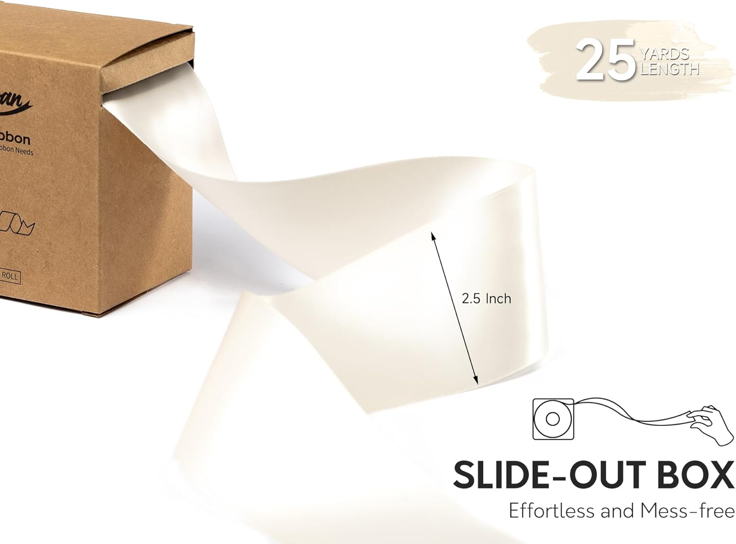 - WHAT YOU GET: This satin ribbon includes 1 roll of 2-1/2 inch wide satin ribbon. Each roll is 25 yards, to satisfy your various needs
