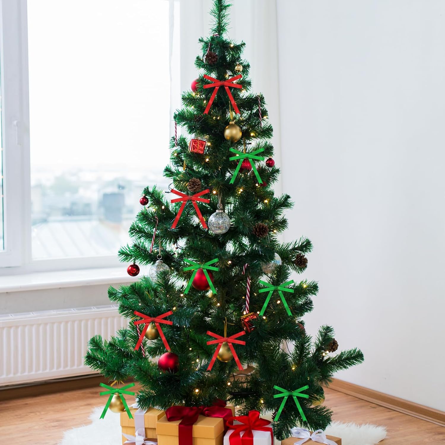 - 【Size】The Christmas Ribbon Set comes with 4 rolls of festive ribbons, each measuring 3/8" wide and 25 yards long. The set includes red, green, silver glitter, and gold glitter ribbons, providing a total of 100 yards to work with. It’s perfect for all your holiday decorating needs.
