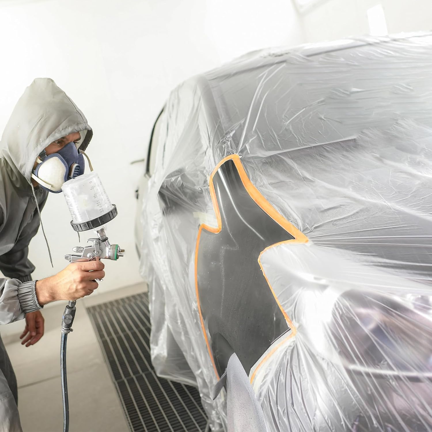 - Practical Usage: The Plastic Film Paint Plastic Covering Pre-taped masking film is used for masking and dust protection. These covering rolls are suitable for covering skirting boards, frames, cars, and auto body parts during painting or detailing tasks. They help protect surfaces from paint splatters or drips maintaining a professional finish.