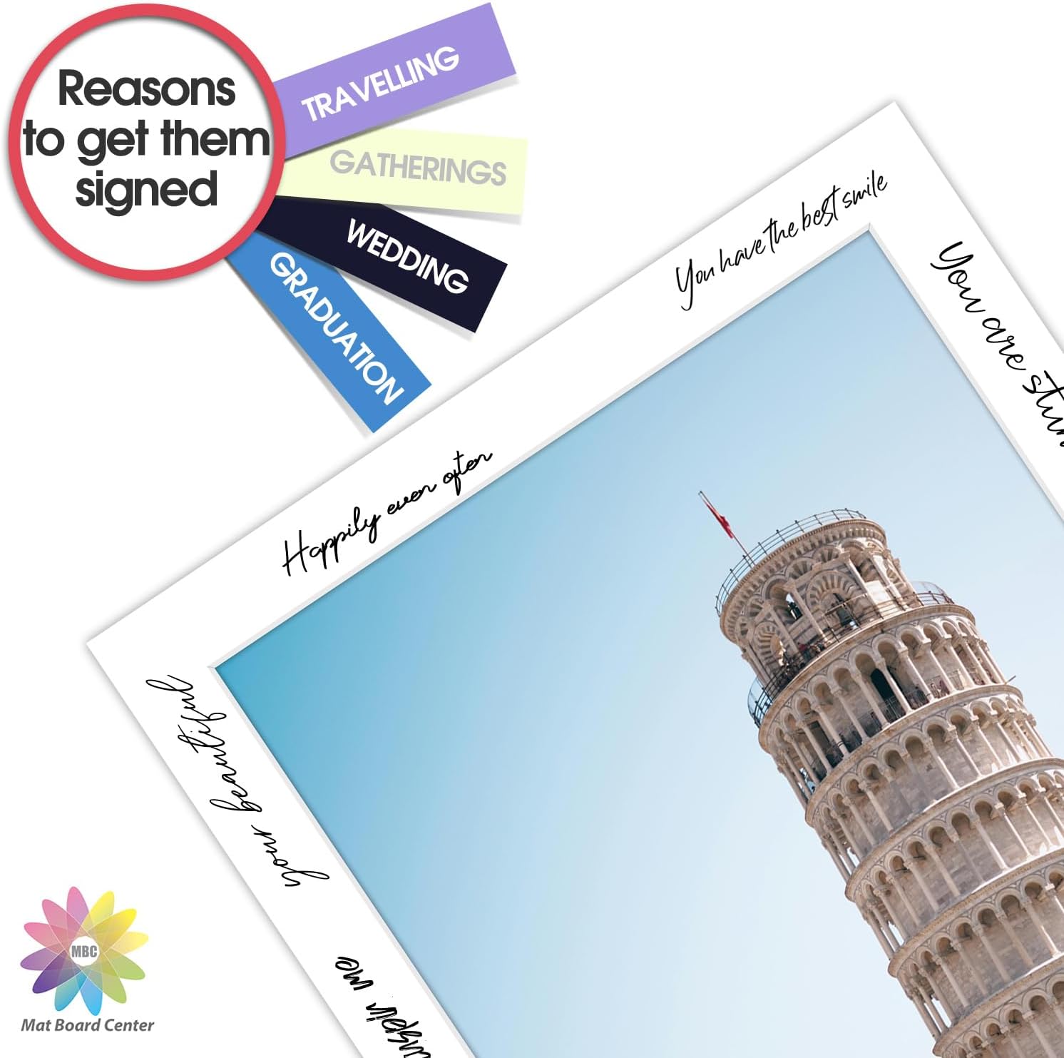 MBC Mat Board Center, 5 Pack 8x10 for 7x9 White Picture Mats Frame Mattes, Bevel Cut, Acid Free, 4-ply Thickness