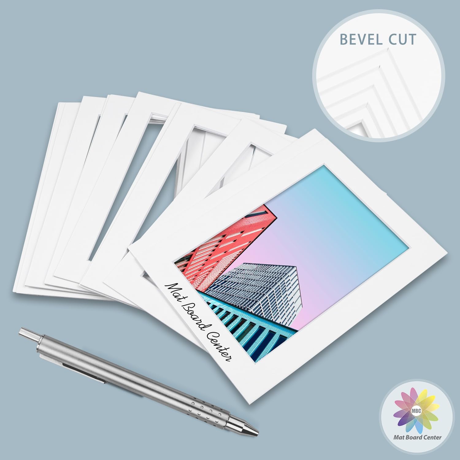 MBC Mat Board Center, 5 Pack 11x14 for 5x7 White Picture Mats Frame Mattes, Bevel Cut, Acid Free, 4-ply Thickness