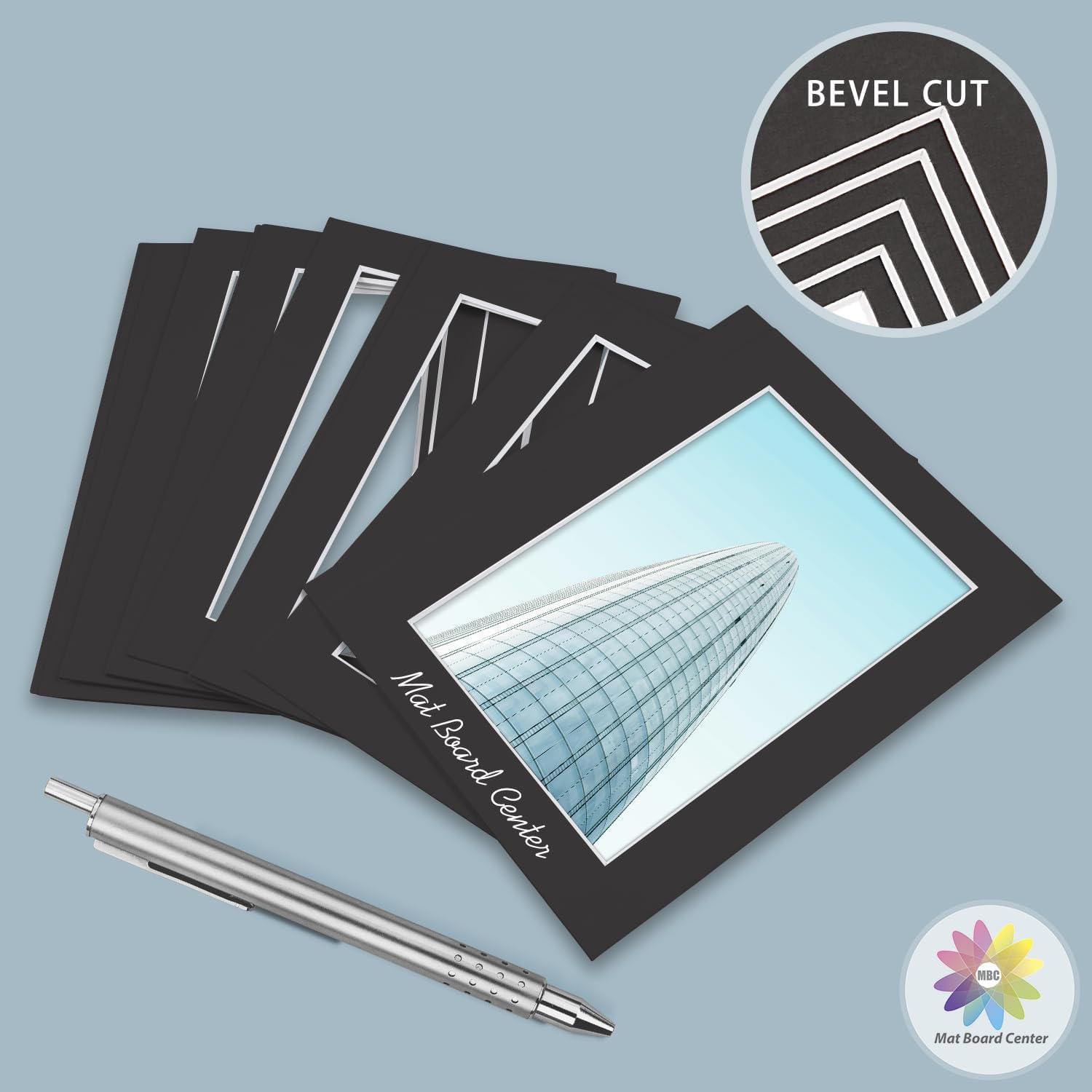 MBC MAT BOARD CENTER, 10 Pack 8x10 for 7x9 Black Picture Mats Frame Mattes, Bevel Cut, Acid Free, 4-ply Thickness