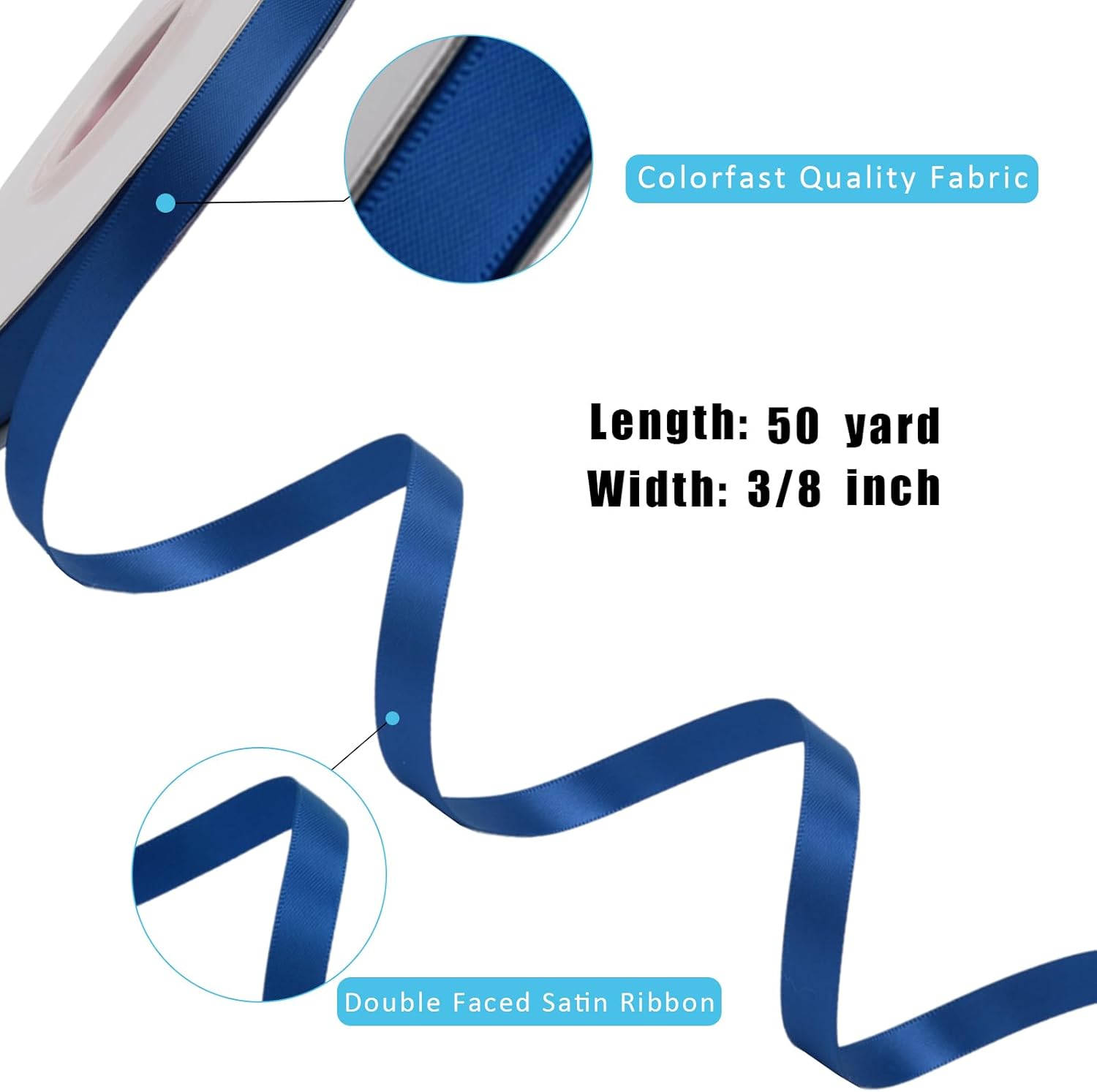 LaRibbons 3/8 Inch 50 Yard Double Faced Satin Ribbon,Royal Blue Small Satin Craft Fabric Ribbon for Gift Wrapping Floral Bouquets Wedding Party Decoration