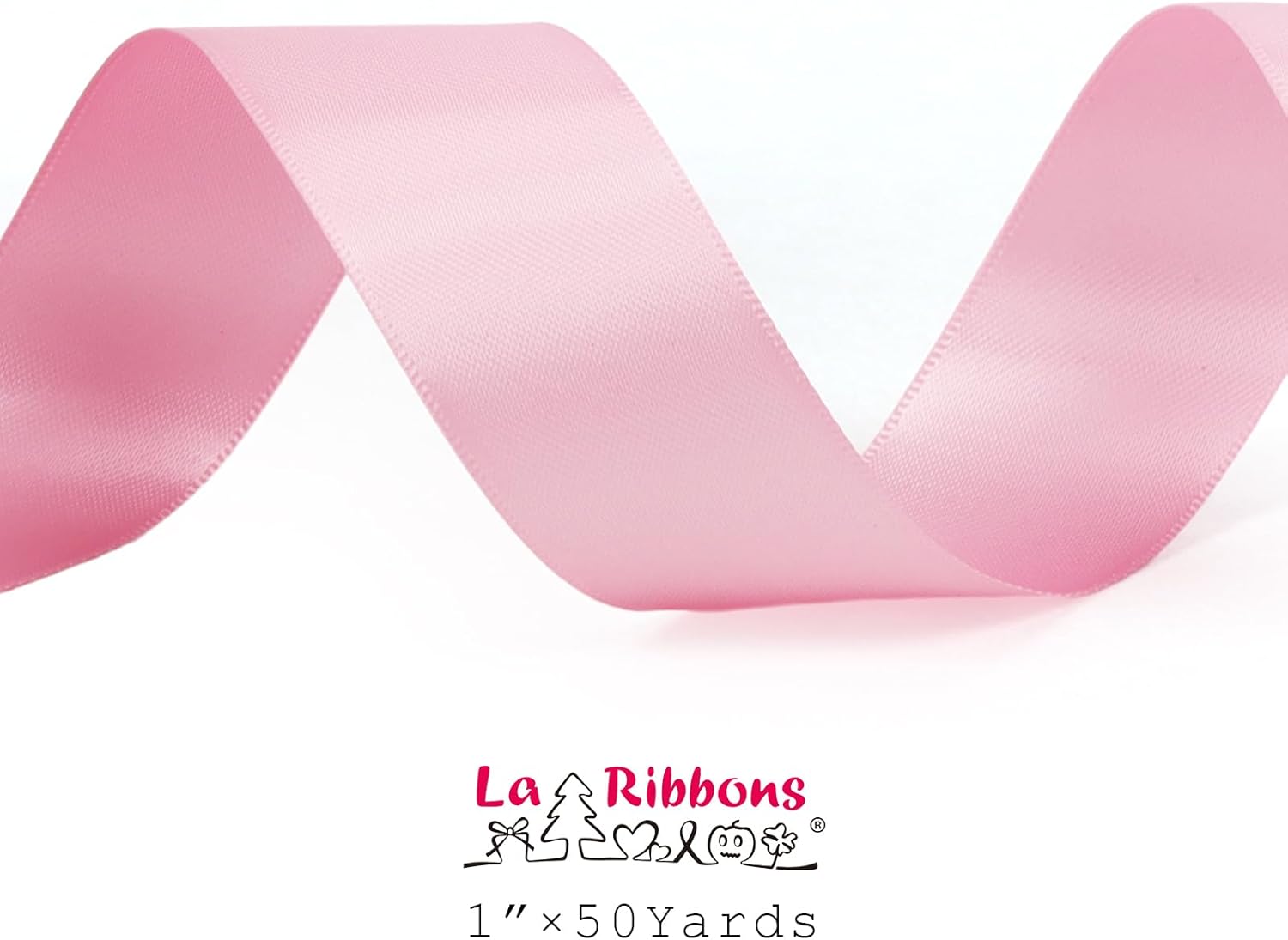 LaRibbons 1 Inch 50 Yard Double Faced Satin Ribbon,Rose Pink Satin Craft Fabric Ribbon for Gift Wrapping Floral Bouquets Wedding Party Decoration