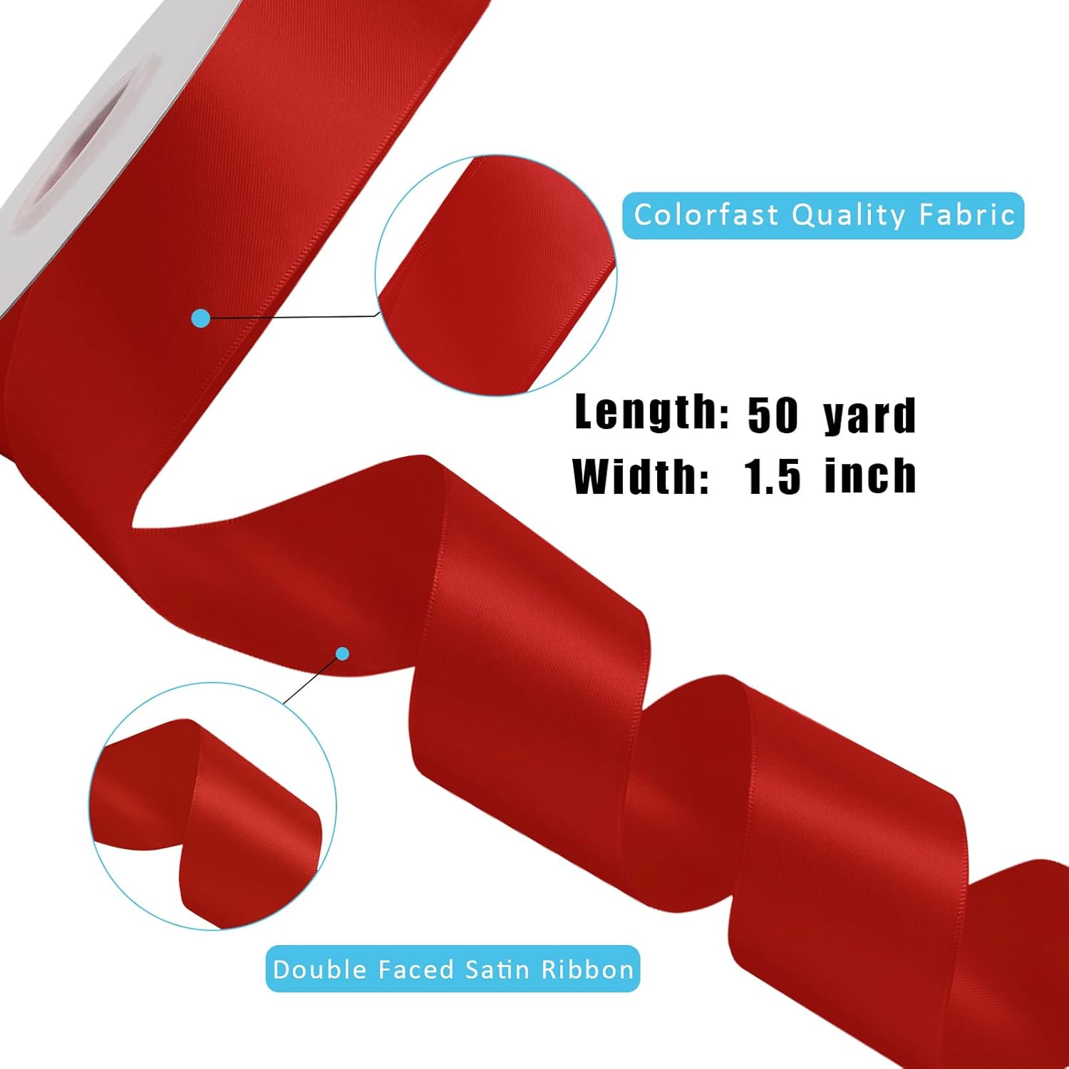 LaRibbons 1 1/2 Inch 50 Yard Double Faced Satin Ribbon,Red Satin Craft Fabric Ribbon for Gift Wrapping Floral Bouquets Wedding Party Decoration