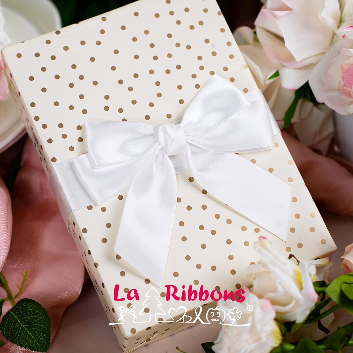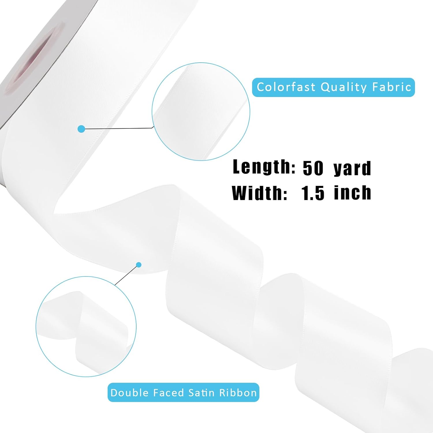 LaRibbons 1 1/2 Inch 50 Yard Double Faced Satin Ribbon,White Satin Craft Fabric Ribbon for Gift Wrapping Floral Bouquets Wedding Party Decoration