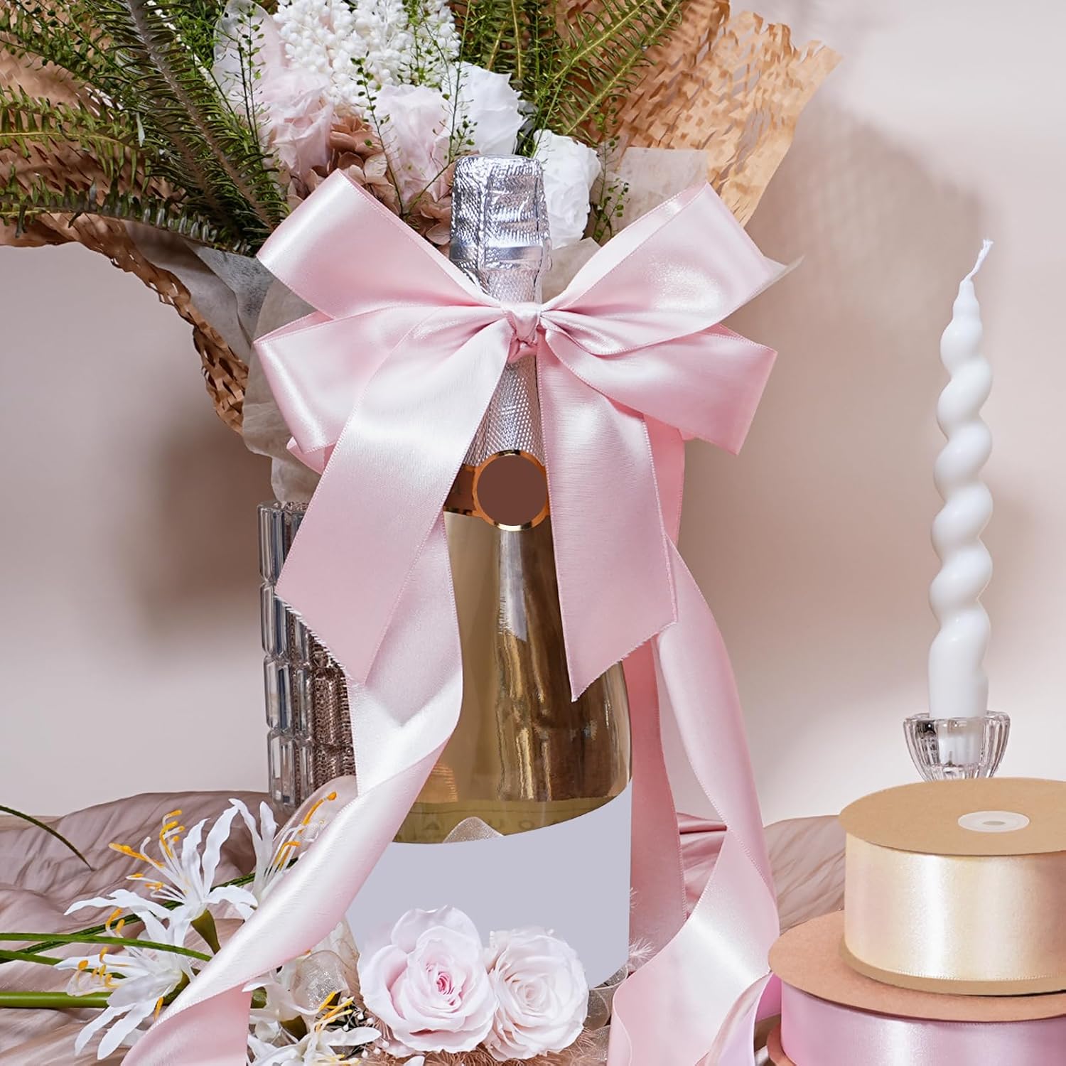 LaRibbons 1 1/2 Inch 50 Yard Double Faced Satin Ribbon,Light Pink Satin Craft Fabric Ribbon for Gift Wrapping Floral Bouquets Wedding Party Decoration