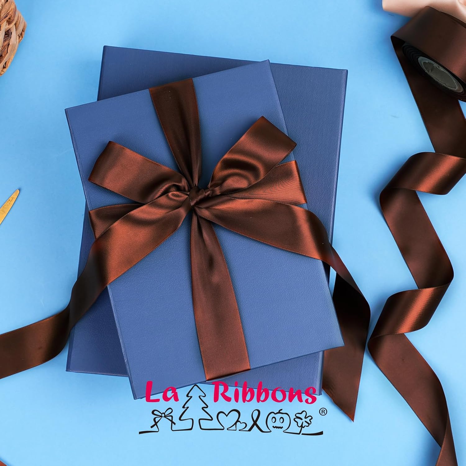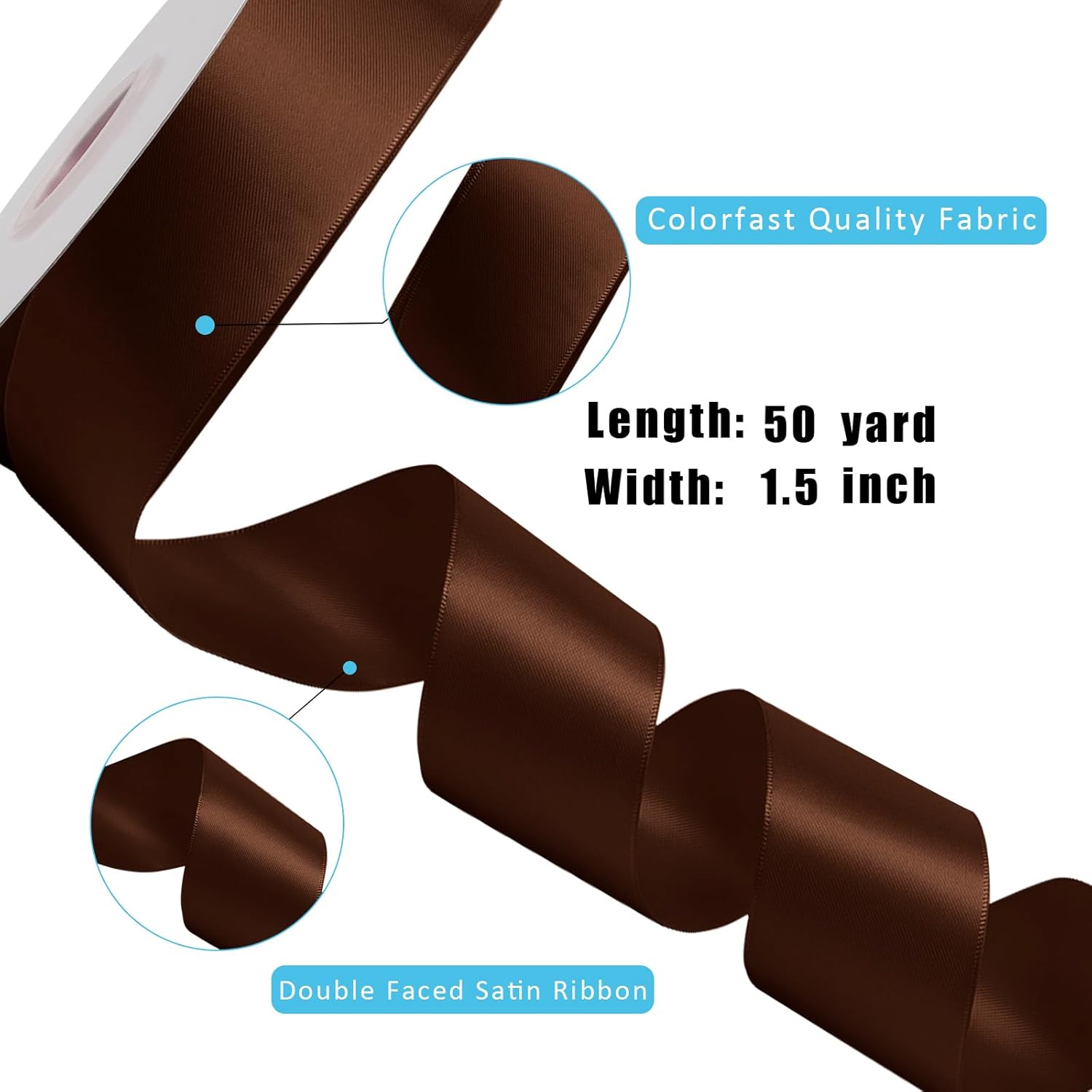 LaRibbons 1 1/2 Inch 50 Yard Double Faced Satin Ribbon,Friar Brown Satin Craft Fabric Ribbon for Gift Wrapping Floral Bouquets Wedding Party Decoration