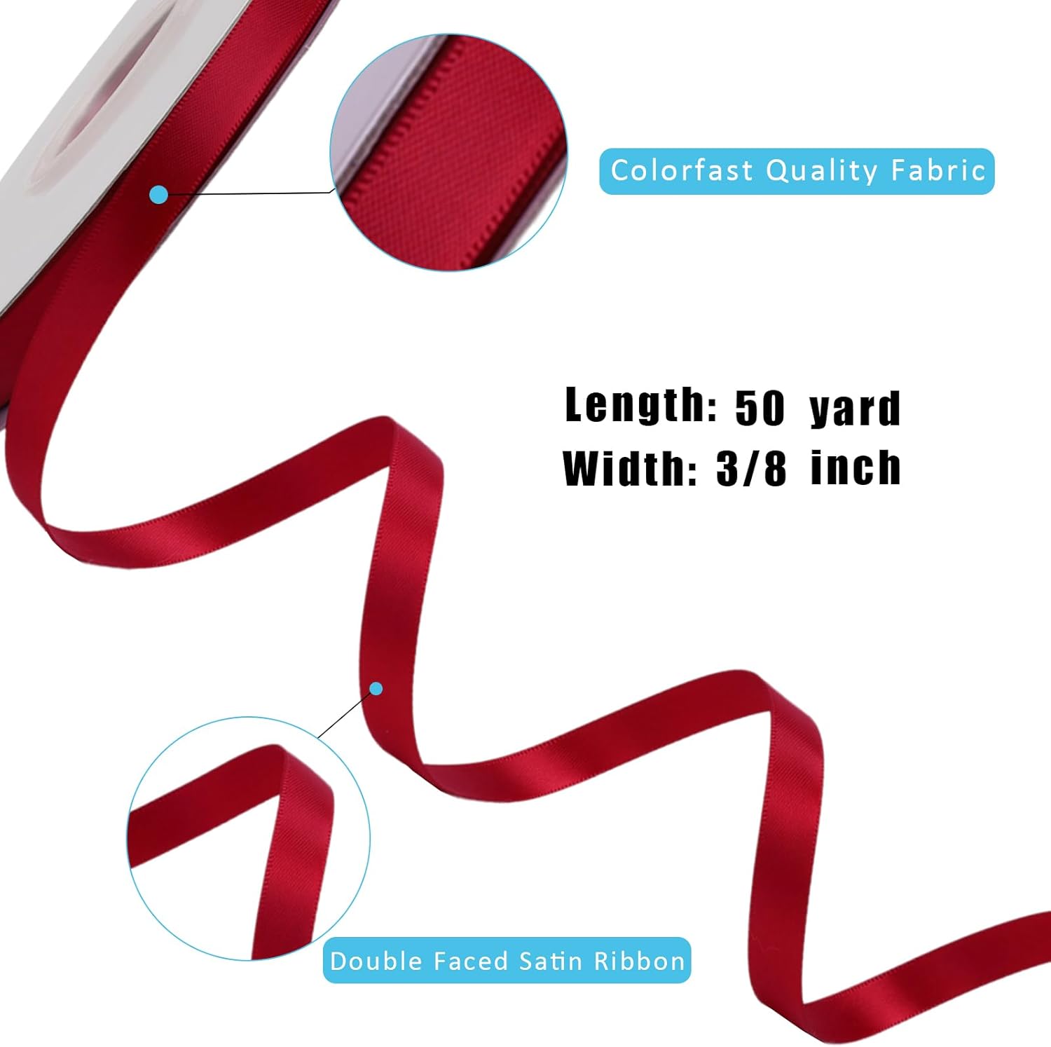 LaRibbons 3/8 Inch 50 Yard Double Faced Satin Ribbon,Red Small Satin Craft Fabric Ribbon for Gift Wrapping Floral Bouquets Wedding Party Decoration
