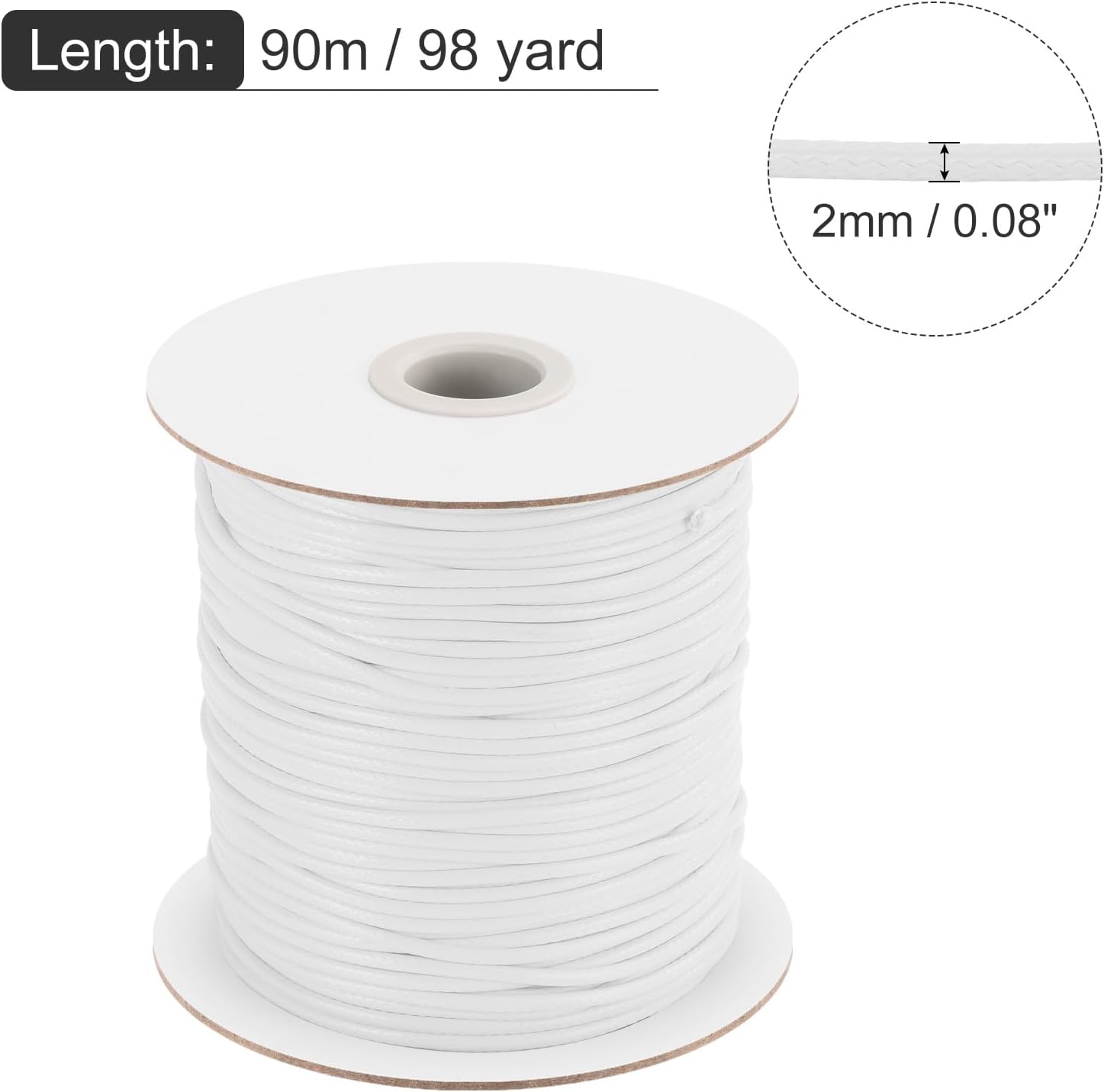 MECCANIXITY Waxed Cord 2mm Waxed Polyester Cord 98 Yard Wax String for Bracelet Making, Necklaces, Beading, Jewelry Making and DIY Crafts(White)
