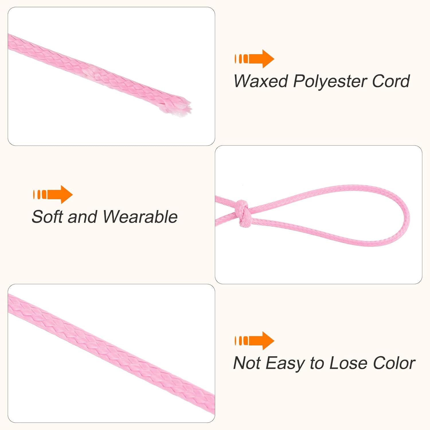 - This waxed ropes has bright and beautiful color,easily knotted and braided, you can use this waxed cotton thread to make bracelets, jewelry, friendship bracelets, macramé rope projects, packaging, leather sewing, scrapbooking, leather working, beading, and more. It is an important raw material for jewelry making and DIY crafting.