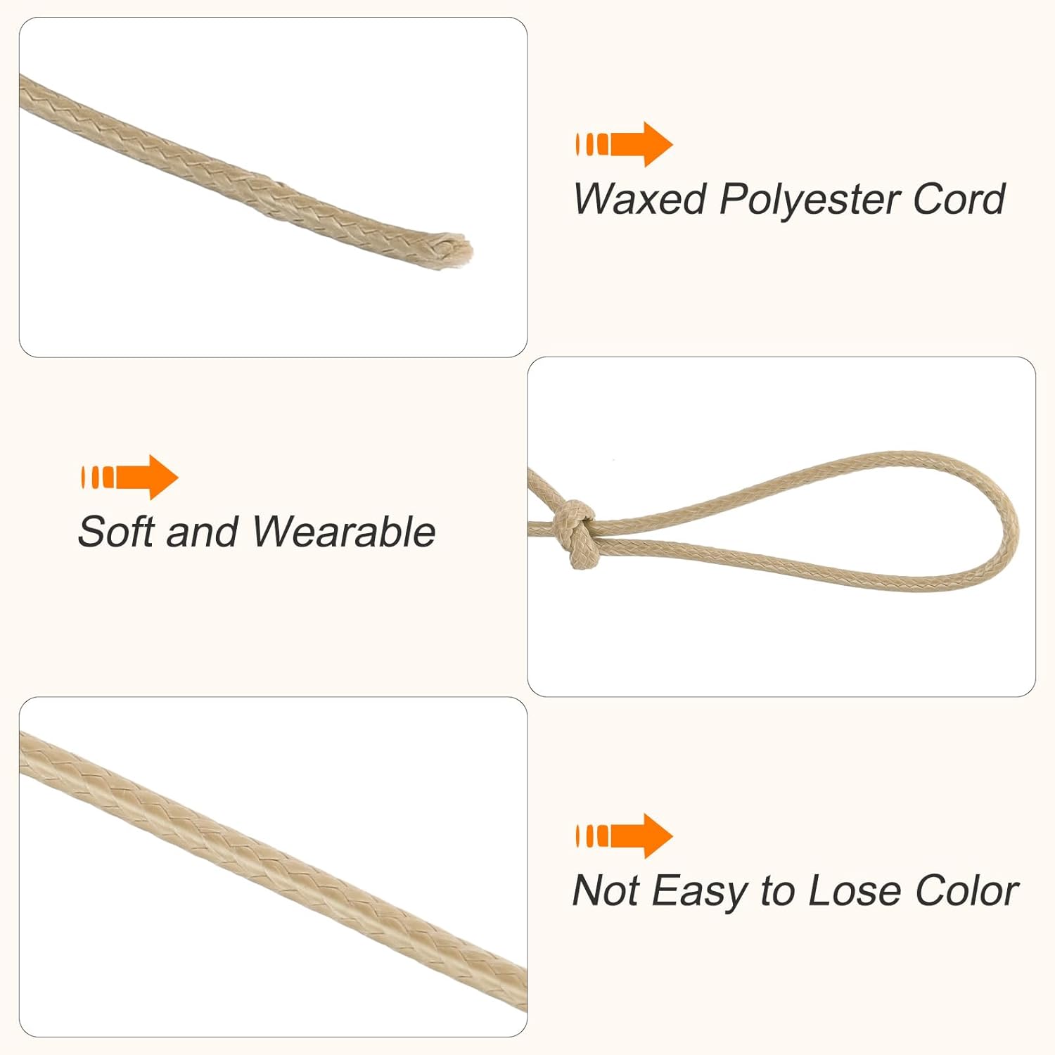 MECCANIXITY Waxed Cord 3mm Waxed Polyester Cord 44 Yard Wax String for Bracelet Making, Necklaces, Beading, Jewelry Making and DIY Crafts(Khaki)