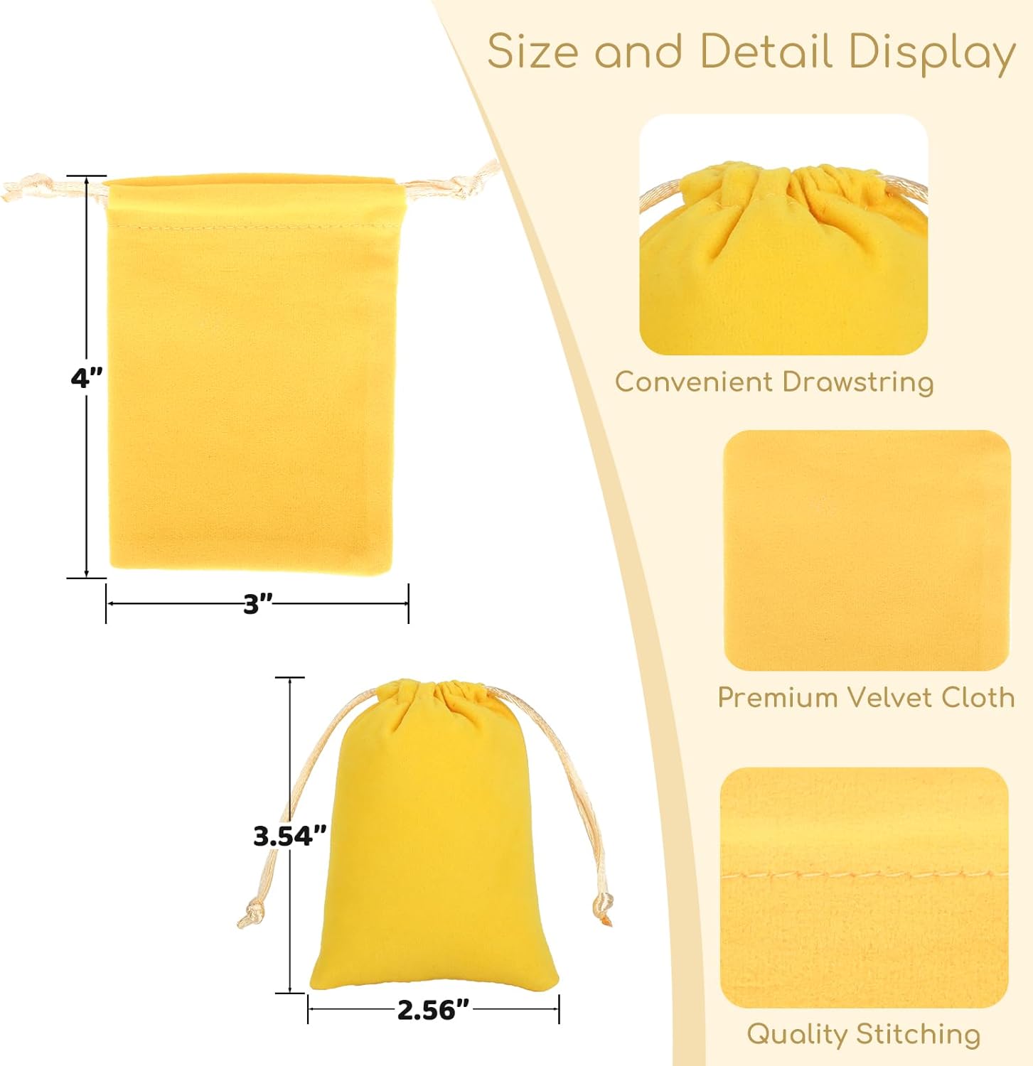 Velvet Drawstring Jewelry Bag, 50Pcs Yellow Coin Pouch, 3x4 Dice Bag, for Wrapping Halloween Party Favors or Gifts for Friends, Small Bussiness, Resin Runes, Chains, Customers