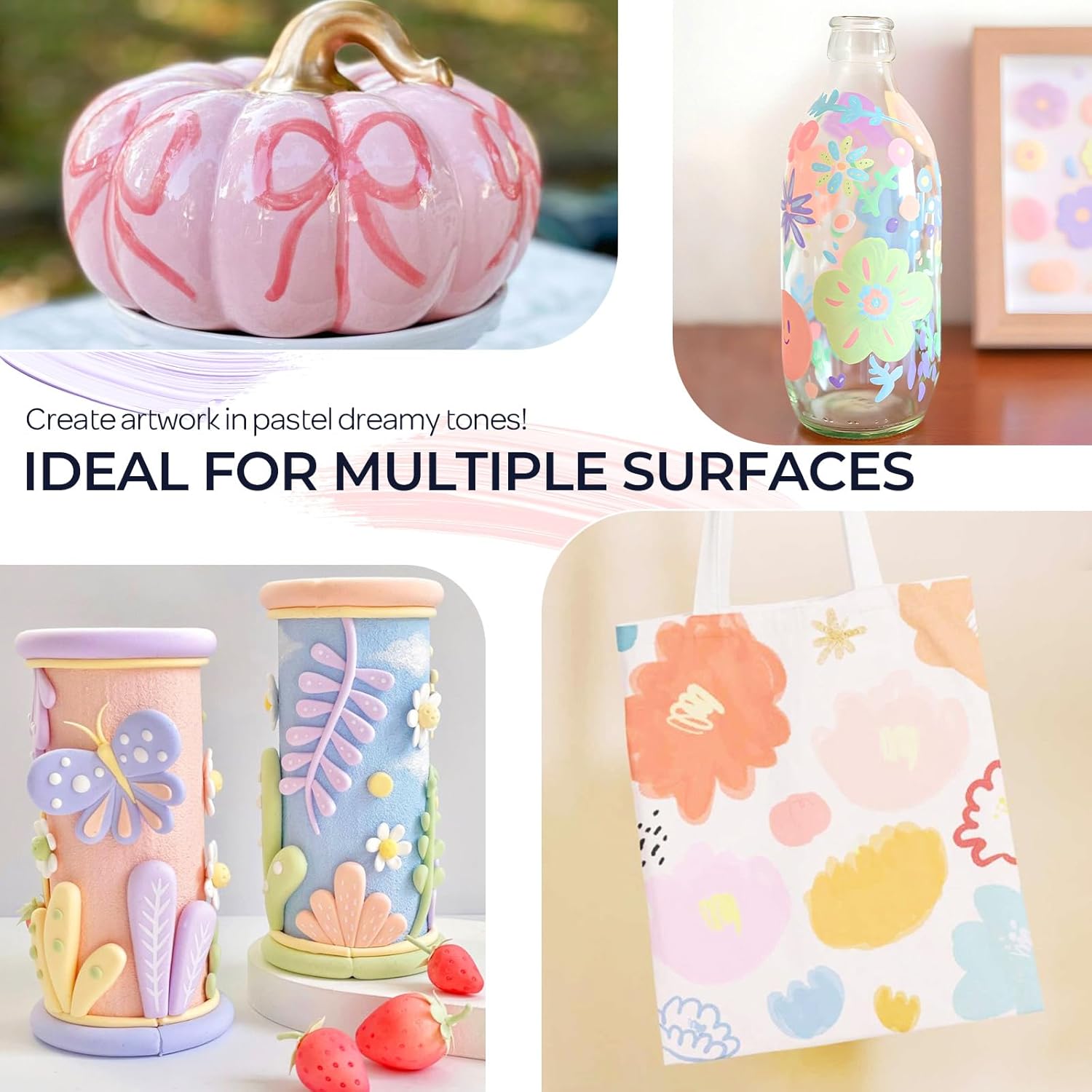 - Quick-Drying & Long-Lasting - Fast drying, allow to layer paint quickly without muddying colors, won’t fade over time. Great for canvas art, DIY card, scrapbooking, Halloween pastel pumpkin decor, Christmas wreath details & ceramic pot painting, painting furniture and wall soft pastel tone background.