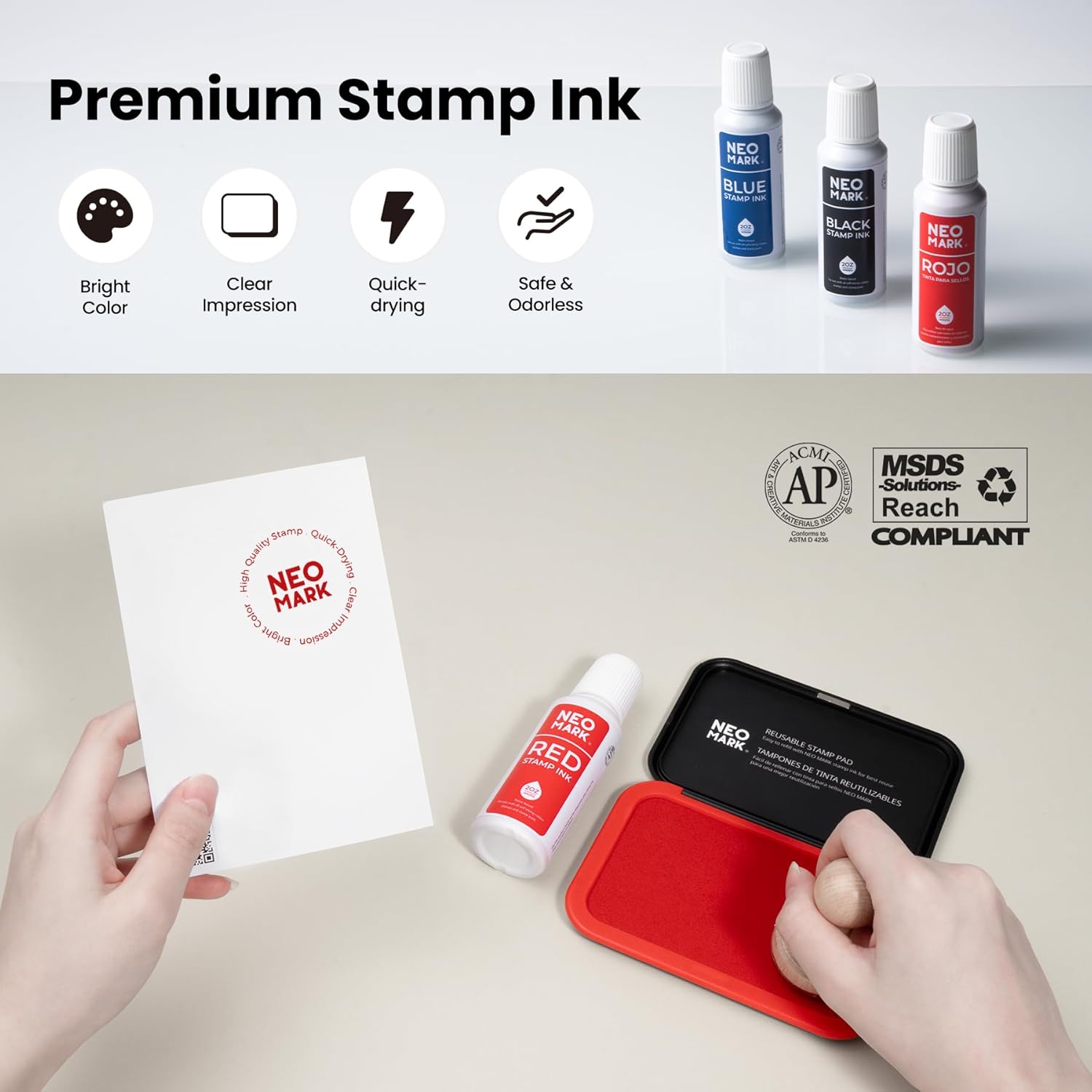 - 【Broad Applicability】2oz red ink. Refill any water-based stamp pad, date stamp, self inking stamp.