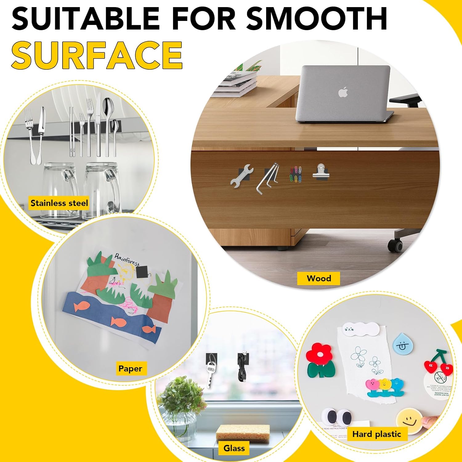 - 【Strong Adhesive】The magnets have a strong adhesive backing, ensuring that they stick firmly to most smooth surface without falling off. Suitable for clean, smooth, and uniform surfaces made of paper, wood, stainless steel, glass, and hard plastic