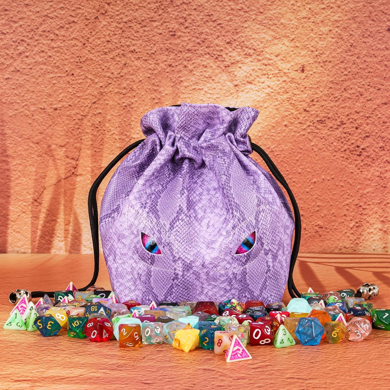 - Unique Appearance: The dnd dice bag has attractive dragon scales skin and fantasy dragon eyes, and has a robust drawstring and skull metal spring clip that ensures the bag closes tightly.