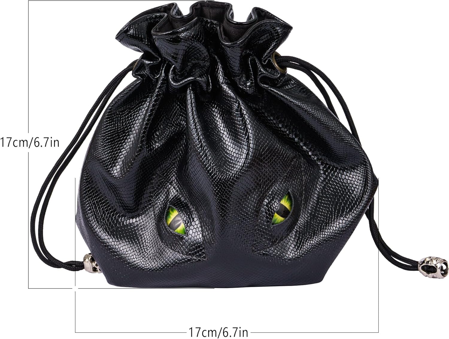 - Unique Appearance: The dnd dice bag has attractive dragon scales skin and fantasy dragon eyes, and has a robust drawstring and skull metal spring clip that ensures the bag closes tightly.