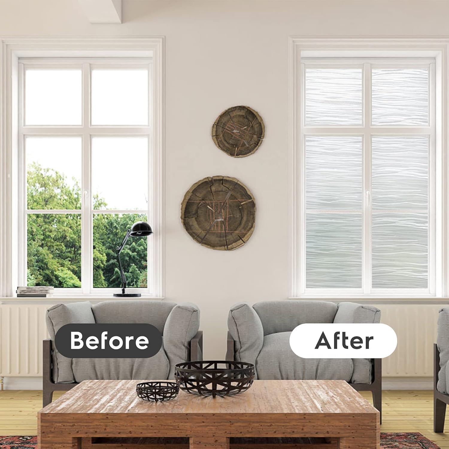 - Elegant Design: Want to decorate your home but have no idea? From the windows! This window film has the appearance of ocean waves when installed horizontally, adds flair to your home or office windows while allowing plenty of light into your space. It is the good substitute of curtain, shutter, drapes on adornment performance
