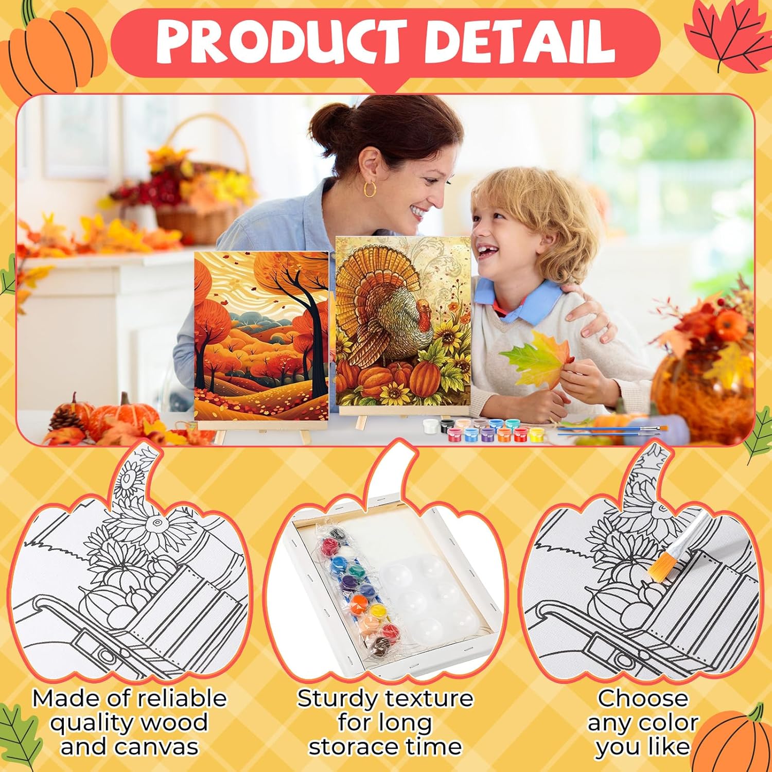 - Different Styles: our drawn canvas offer a variety of 12 different fall Thanksgiving themed styles to choose from; This design can make sure there's a style that fits your taste and preference; Whether you're a beginner, a paint and sip going enthusiast, or an expert painter, our painting canvases with pictures to paint will help you craft stunning artworks effortlessly; Get ready to dive into the world of colors and creativity with our pre drawn canvas paint kit