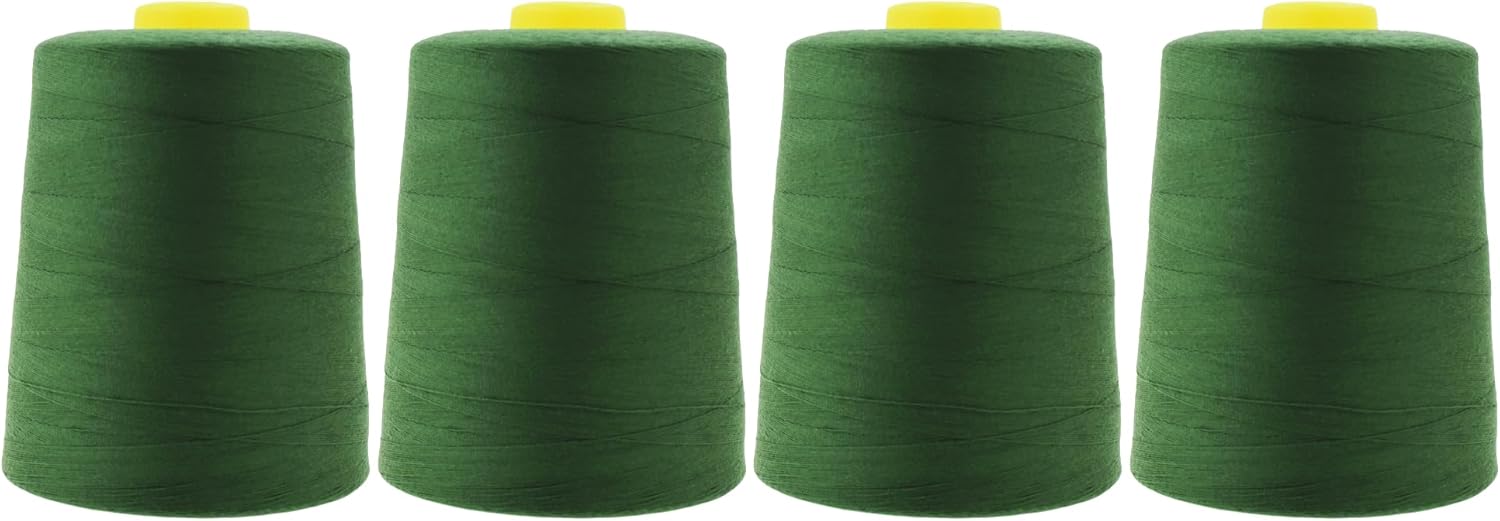 - Easy to Use Hunter Green Sewing Thread Cones: The hunter green sewing thread lays flat and goes through loopers & needles without friction & yields clean lines. The serger sewing thread pairs well with stretch & non-stretch fabric, leather, fleece, denim, flannel, vinyl, & lace.