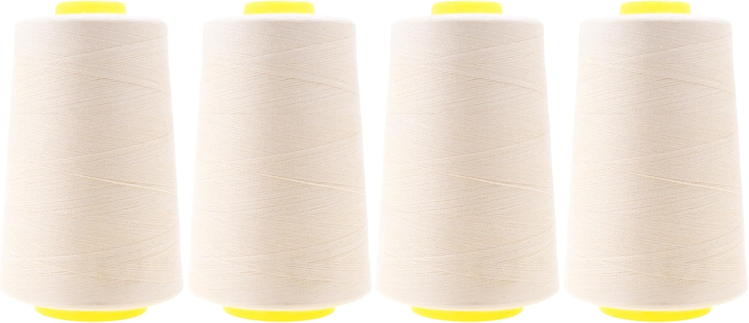 Mandala Crafts 4 Pack of Serger Threads Cones Spools - 40S/2 24000 Yards Polyester Ivory Threads for Sergers Machine and Overlock Quilting Sewing Machine
