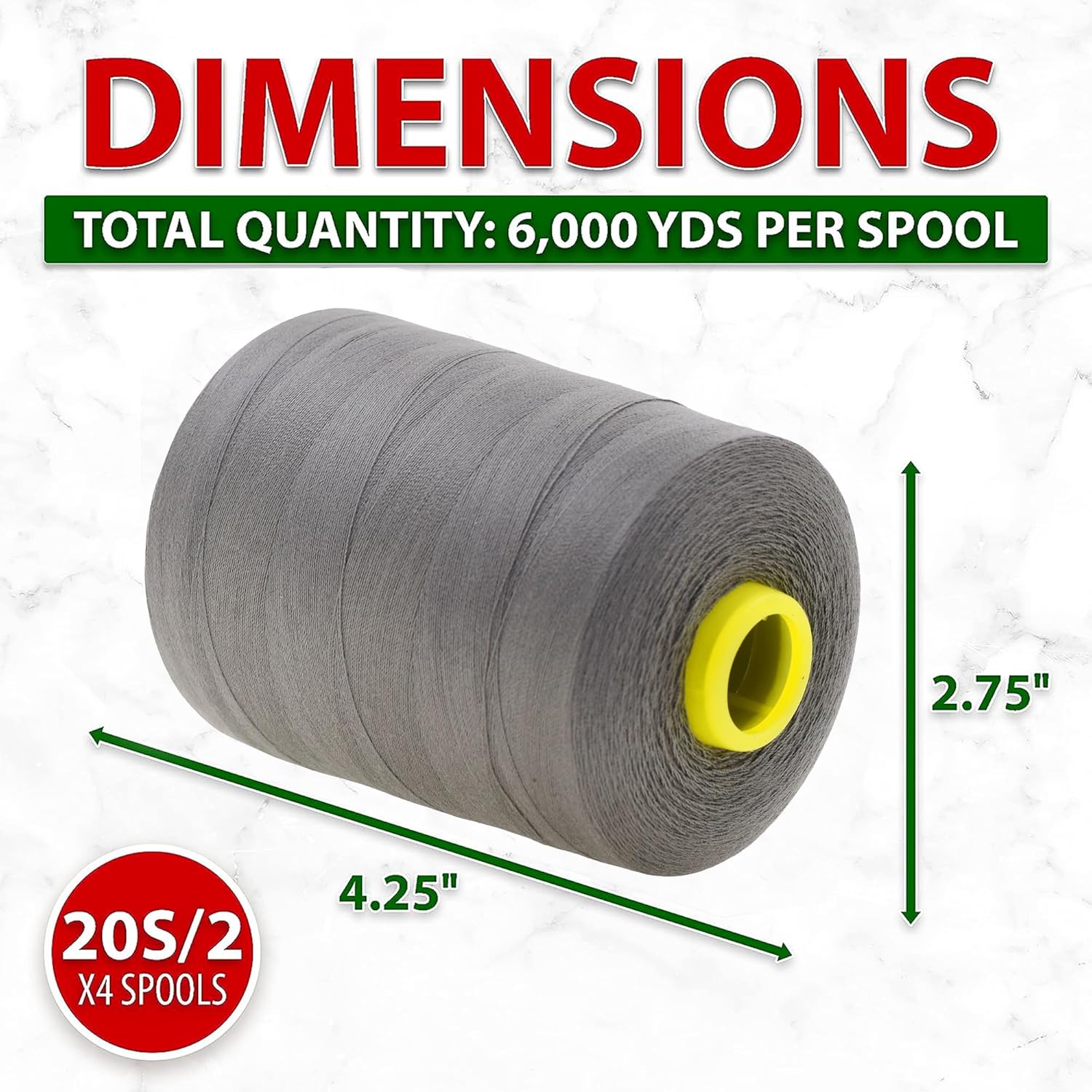 - Bulk Dark Gray Polyester Serger Spools Thread Sewing Supplies Kit: Each 4.25 x 3 x 3 in cone of thread is 6000 yards long. The 20wt all-purpose sewing thread serve as heavy duty cone serger thread for sewing machine for both residential and commercial use.