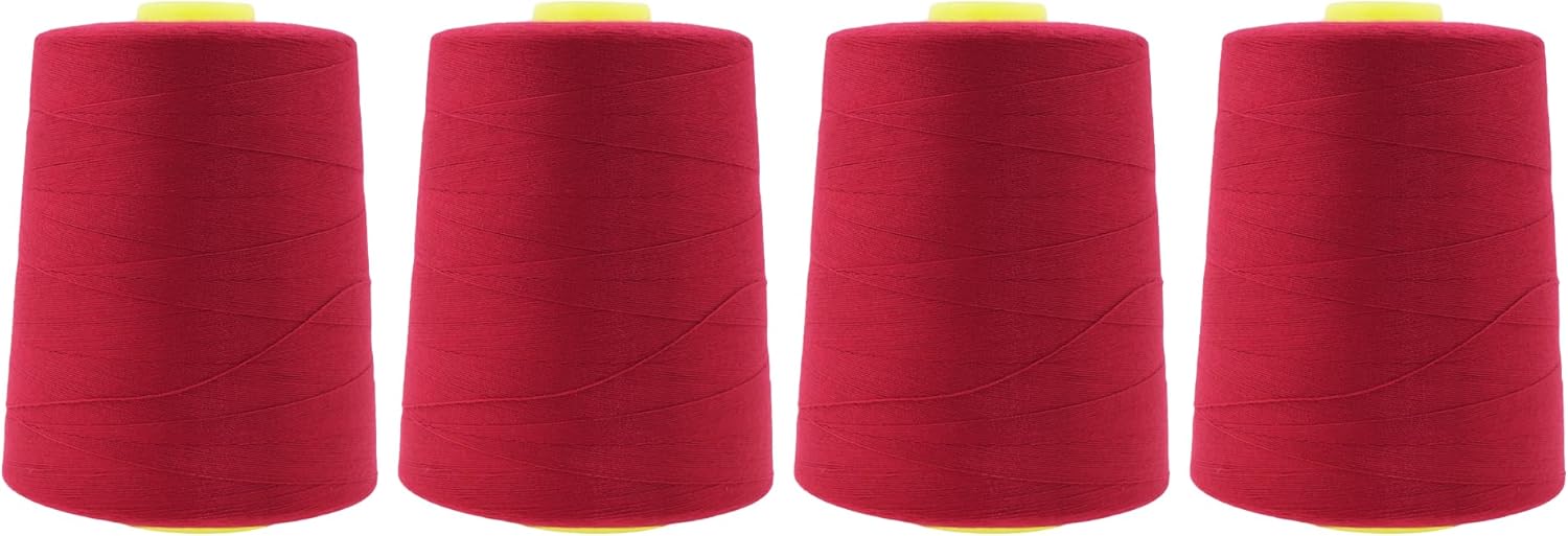 Mandala Crafts 4 Pack of Serger Threads Cones Spools - 20S/2 24000 Yards Polyester Cranberry Threads for Sergers Machine and Overlock Quilting Sewing Machine