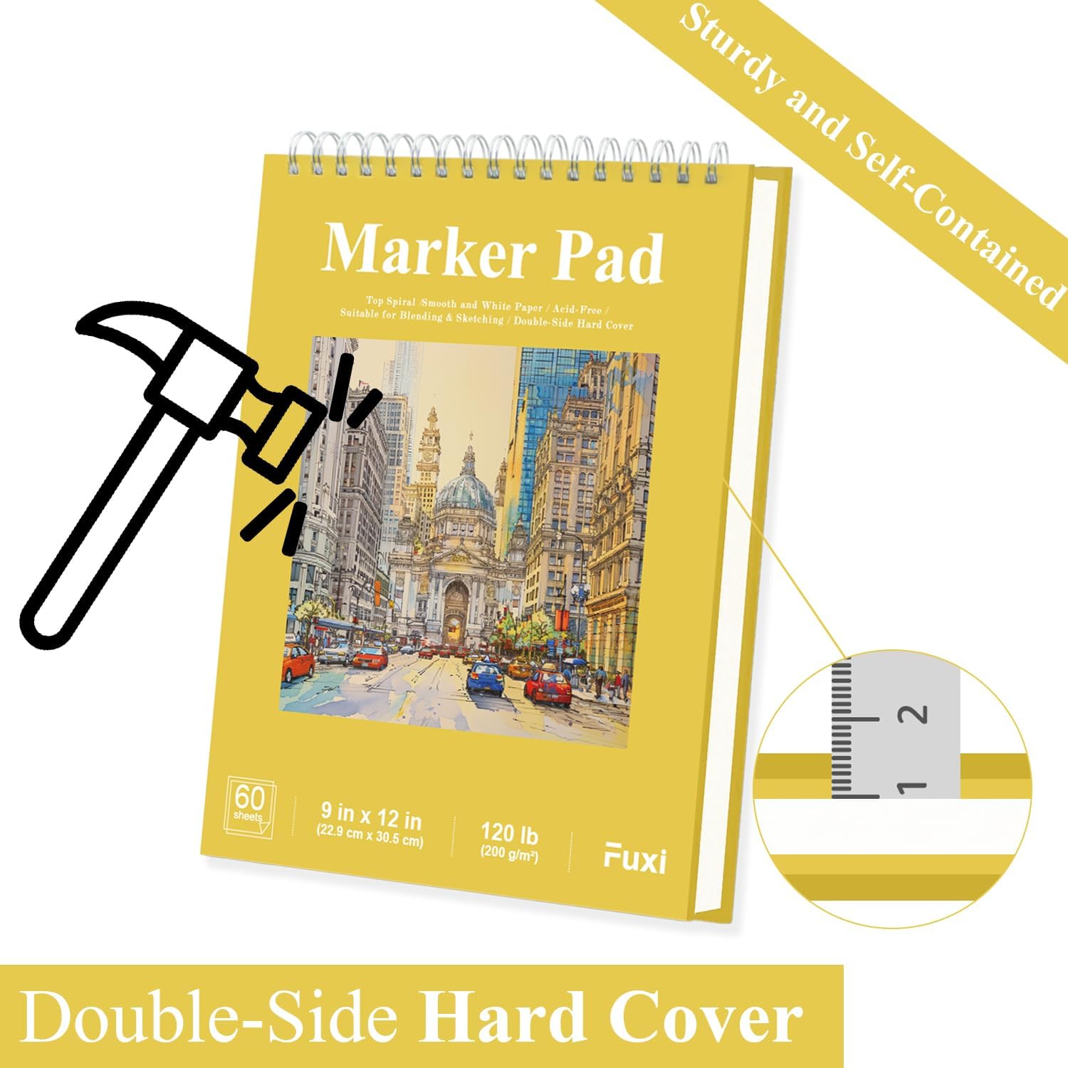 - 120LB (200GSM) Drawing Paper - Fuxi's marker sketchbook is made from white paper, sturdy and sustainable. The smooth surface pairs well with artist. This marker book ensures a premium drawing experience. The marker paper sketchbook handles various techniques without bleeding. Even beginners will appreciate the marker sketchbook bleedproof pages.