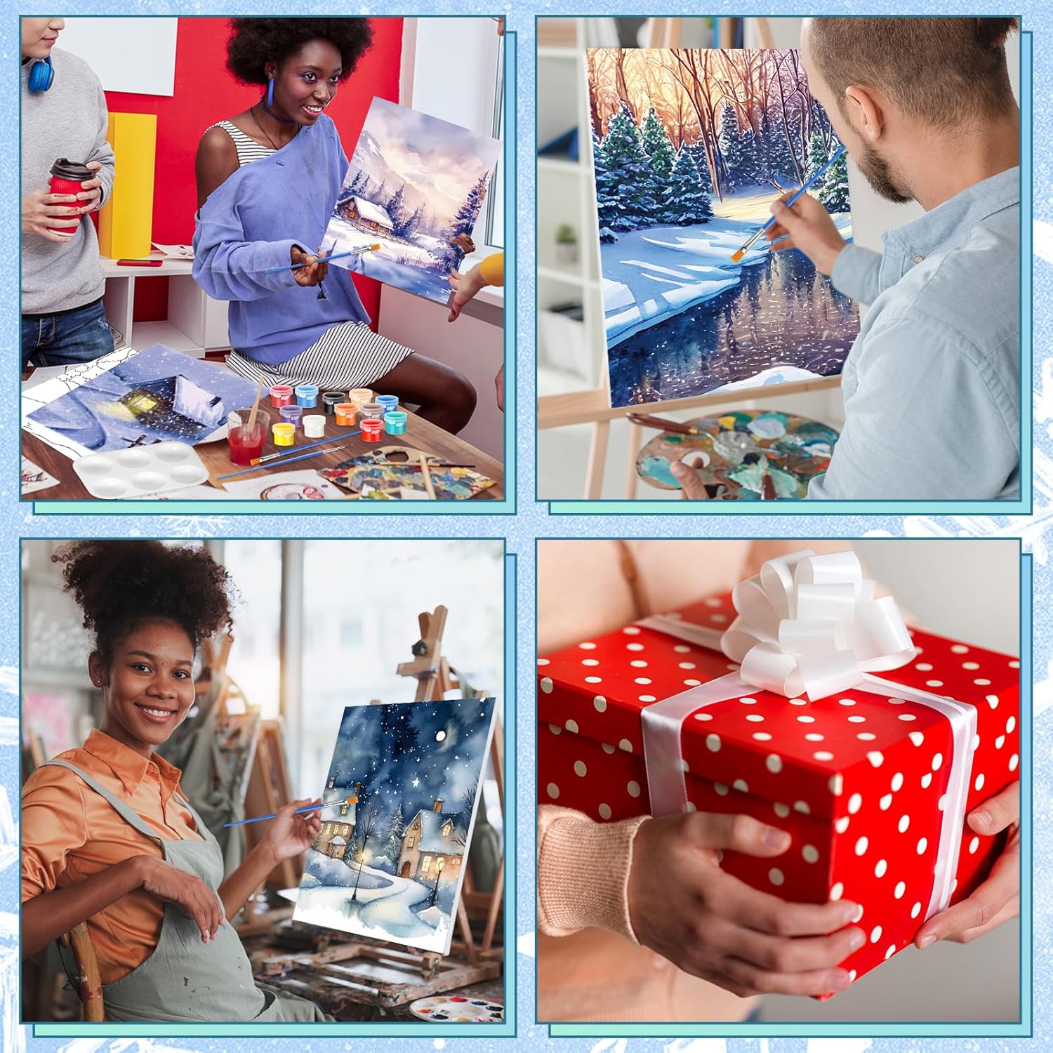 Zhanmai 12 Pack Pre Drawn Canvas for Painting Sip and Paint Kit 8" x 10" Paint Party Set Canvas Painting Pre Printed Canvases for Party Favor DIY Virtual Adult's Date Night (Winter Sonw)