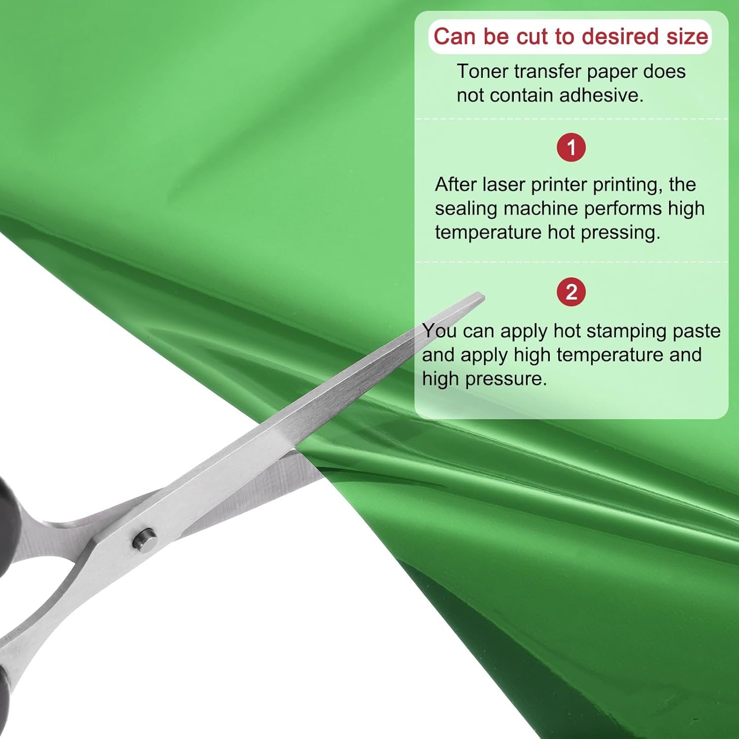 MECCANIXITY 50 Pack Toner Reactive Foil ,Deco Foil Transfer Sheets 8.5"x11" A4 Hot Foil Paper for Laser Printer Scrapbooking Heat Transfer DIY Craft,Green