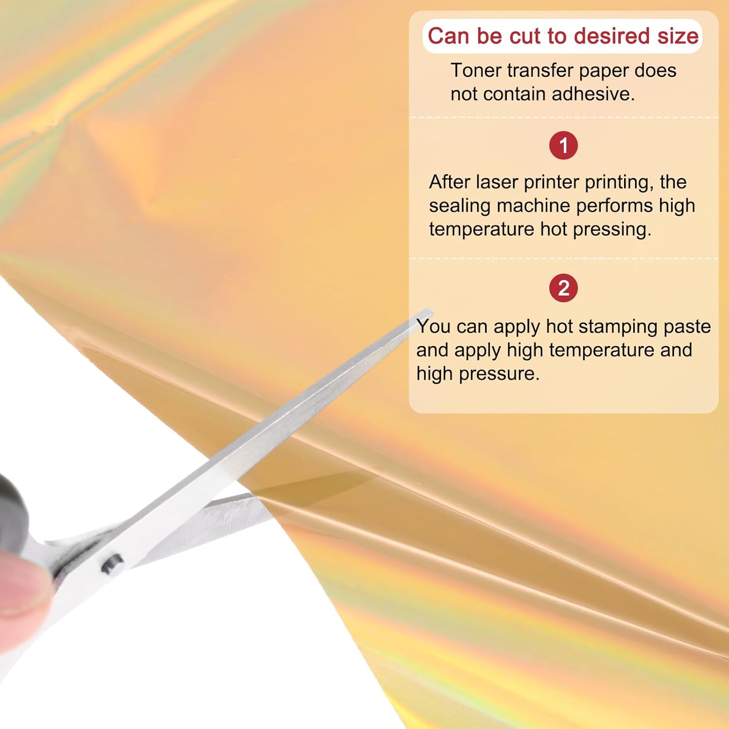 MECCANIXITY 50 Pack Toner Reactive Foil ,Deco Foil Transfer Sheets 8.5"x11" A4 Hot Foil Paper for Laser Printer Scrapbooking Heat Transfer DIY Craft,Laser Gold
