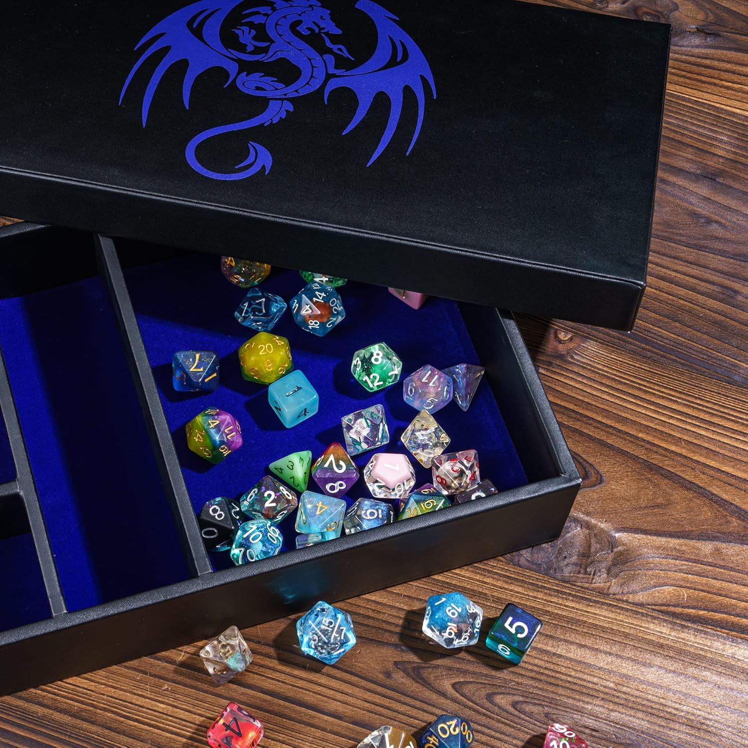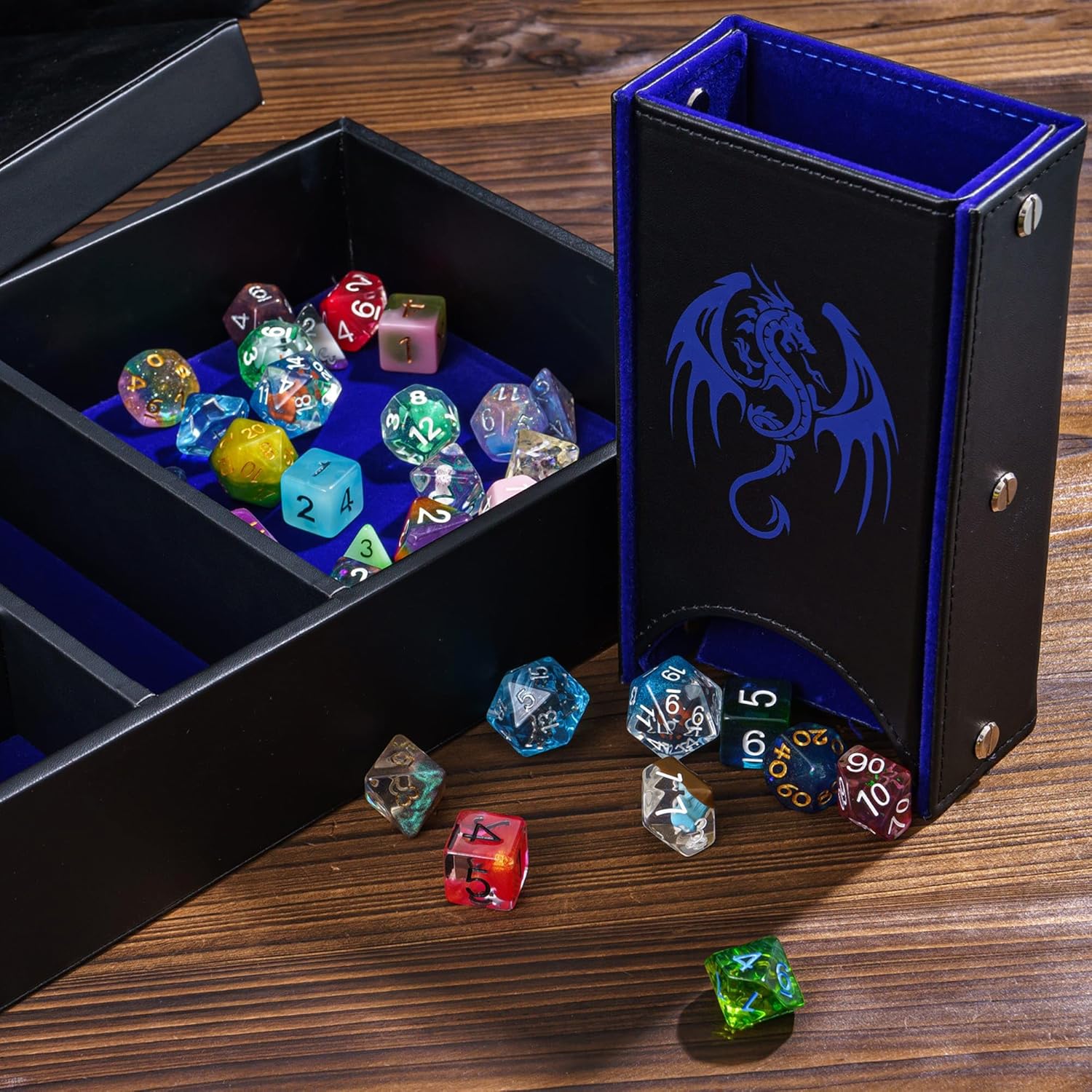 - Premium Dice Box: exquisite appearance, the lid is printed with dragon pattern and the dice tower is printed with the same pattern. This must be the perfect companion for DND rpg players. I think you need this super practical multipurpose dice storage box too.