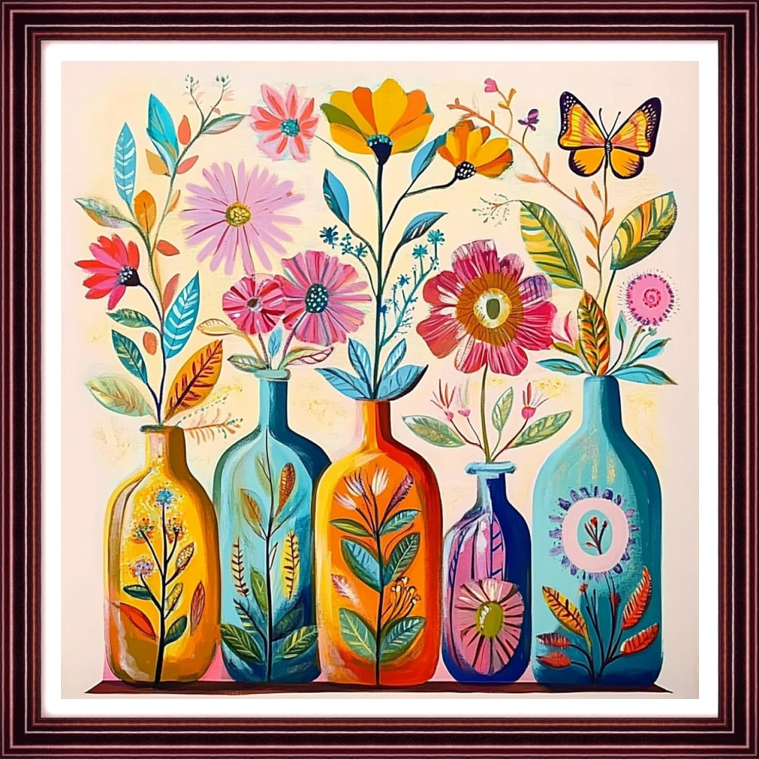 Redxing Stamped Cross Stitch Kits Full Range of Embroidery Starter Kits- Needlepoint Counted Cross Stitch Kits for Beginner Adults 11CT Printed Embroidery Kit-Colorful Flower vase 18x18 inch