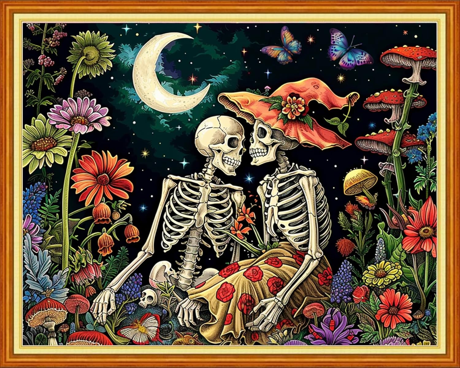 Stamped Cross Stitch Kits - Beach Night Landscape Counted Cross Stitch Kits for Beginners Adults Needlepoint Cross-Stitch Patterns-Skeleton Couple 16x20 inchs