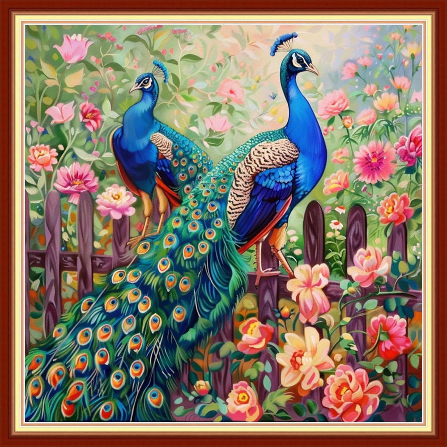Stamped Cross Stitch Kits - Beach Night Landscape Counted Cross Stitch Kits for Beginners Adults Needlepoint Cross-Stitch Patterns-Peacock Couple 18x18 inchs